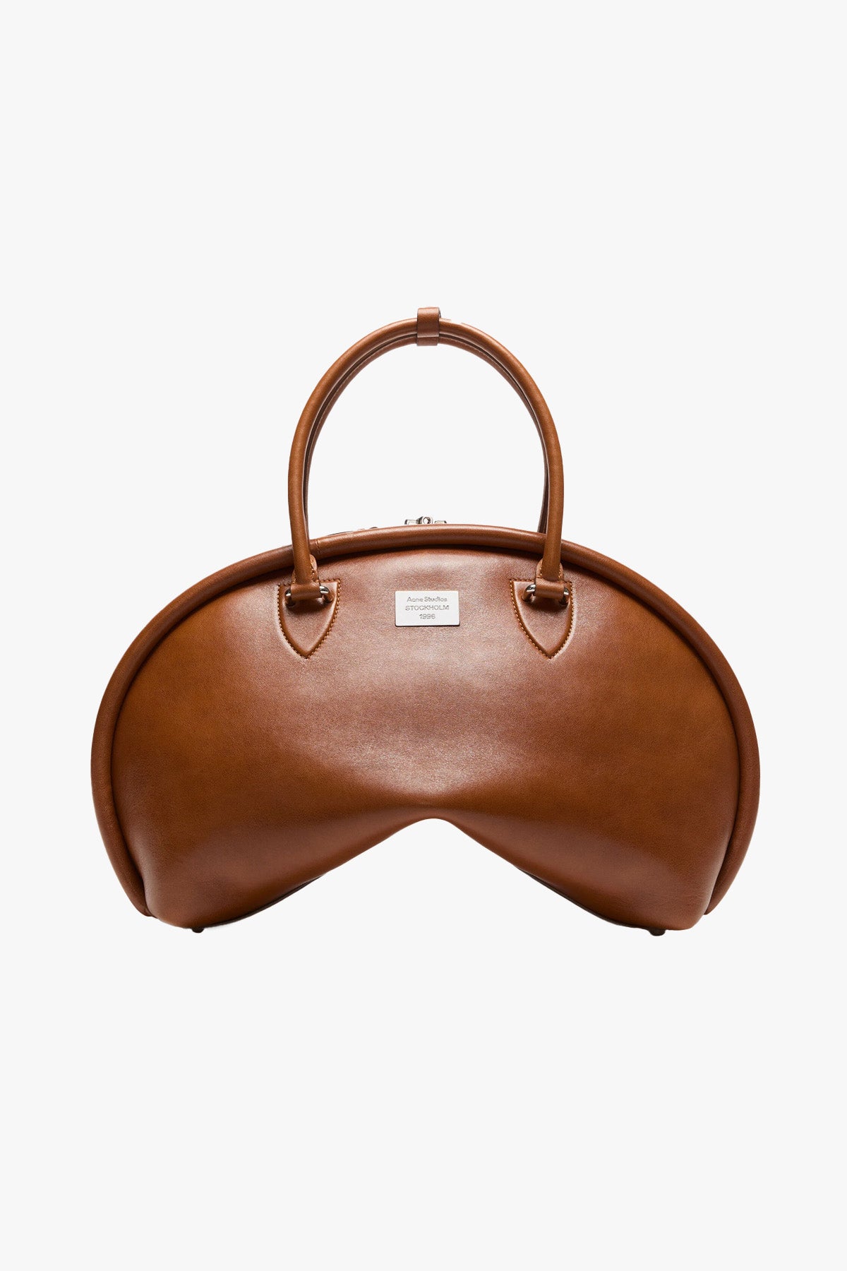 The Bowlina bag is a playful expression of craftsmanship with a unique curved silhouette, crafted from leather. Detailed with an Acne Studios 1996 logo metal plaque and silver-toned finishes.
