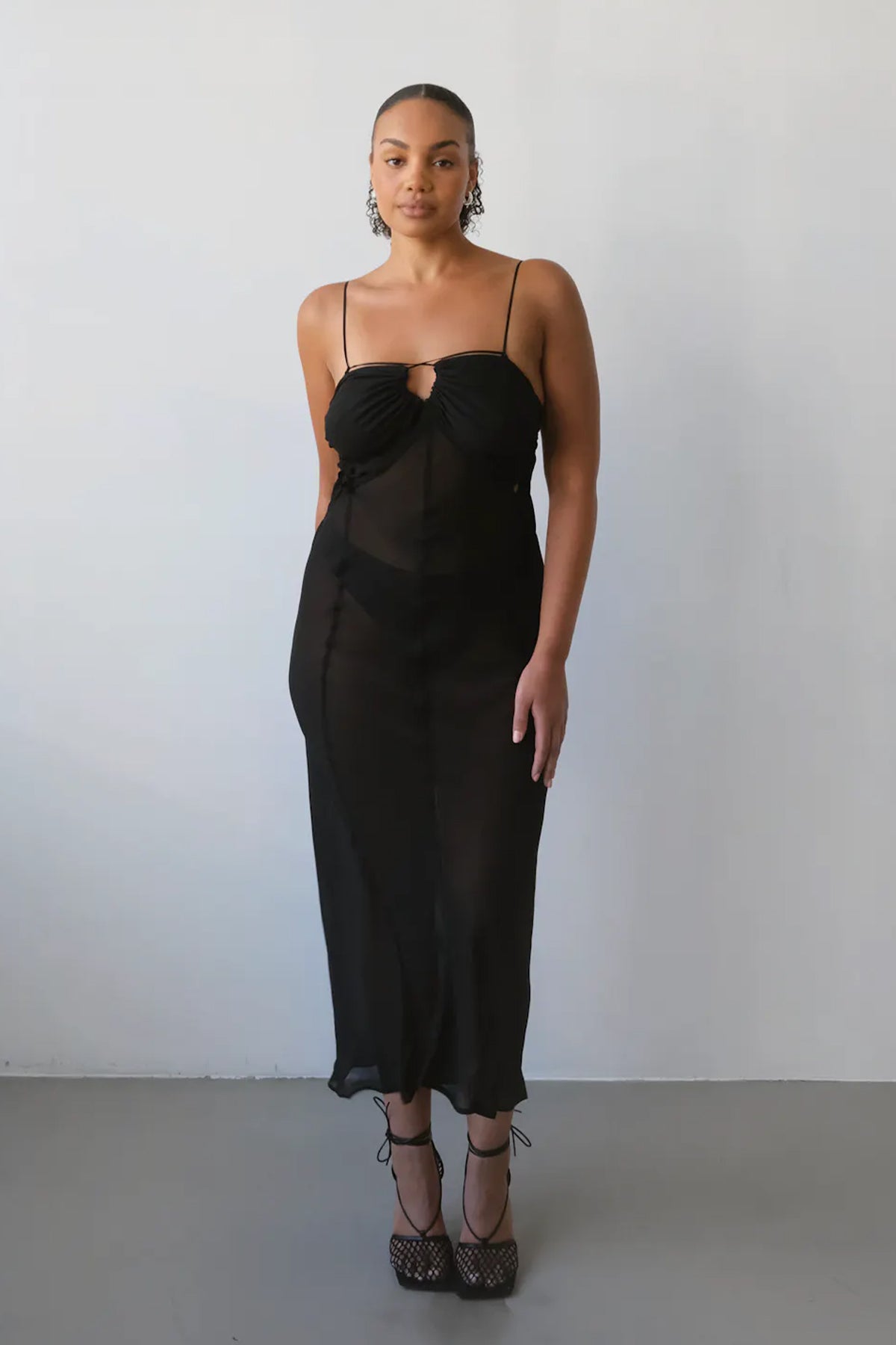 The Portofino Slip Dress is a flowy summer dress. The straps make it possible to wear in many different ways and the versatile design makes it suitable for a long day at the beach. It is chic, breathable and effortless.