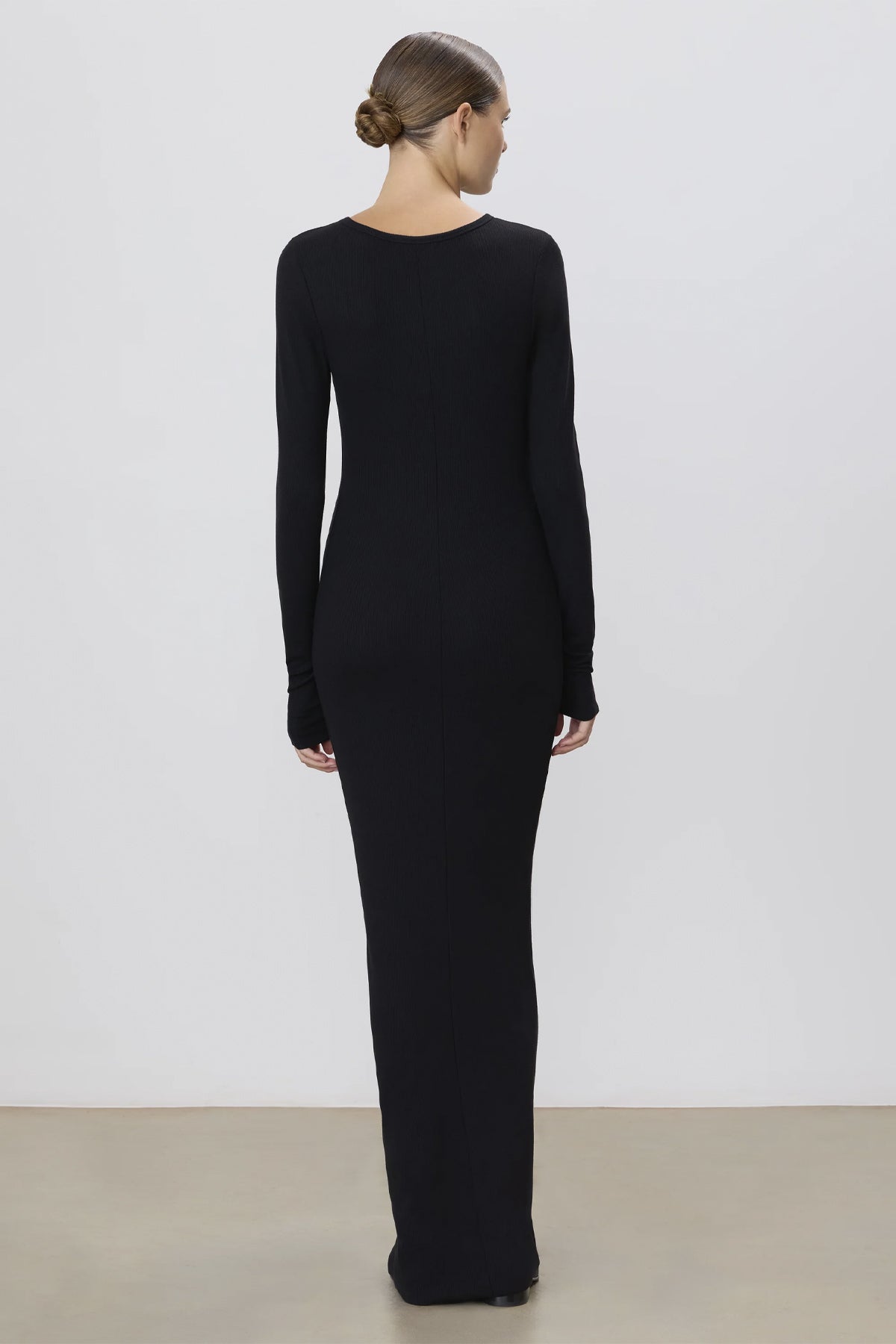 ÉTERNE's Long Sleeve Crewneck Maxi Dress is crafted from ultra soft butter rib cotton blend, offering a form fitting silhouette, signature long sleeves and maxi length — a versatile essential for everyday wear.