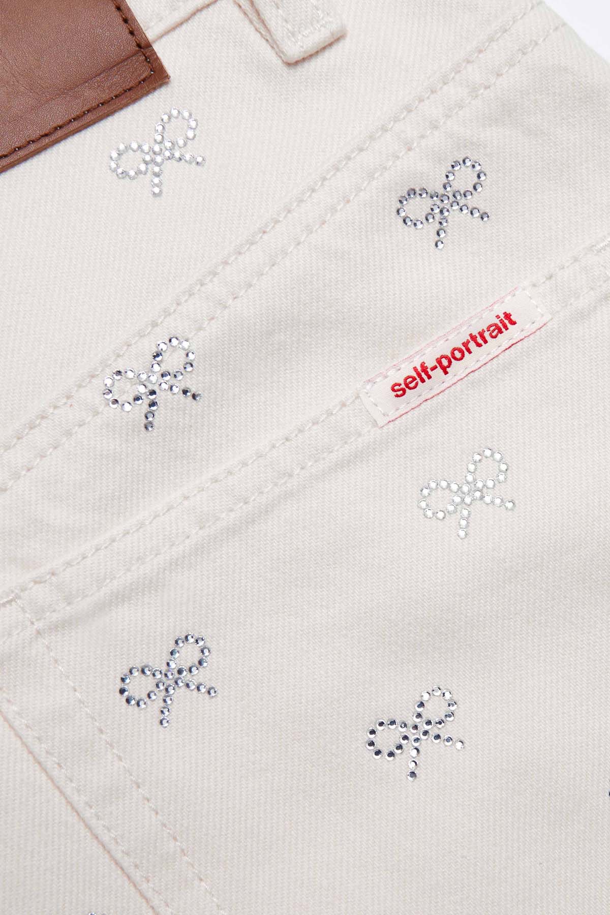 Self-Portrait - Cream Denim Diamante Bow Jeans
