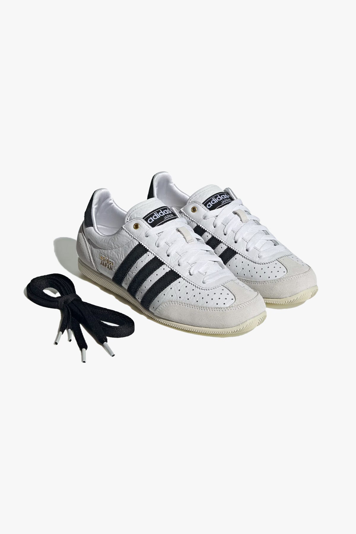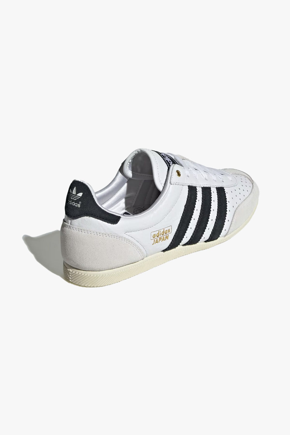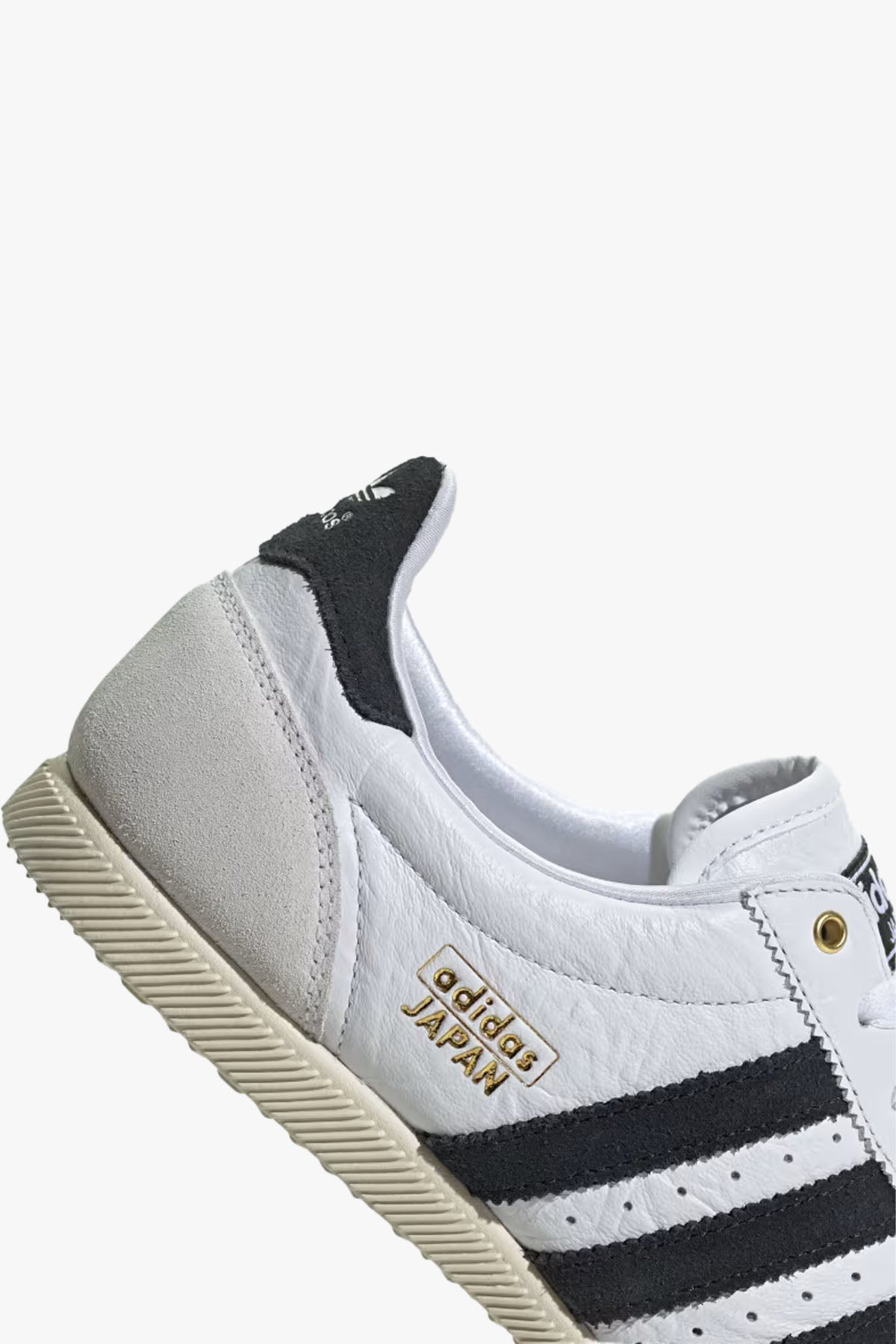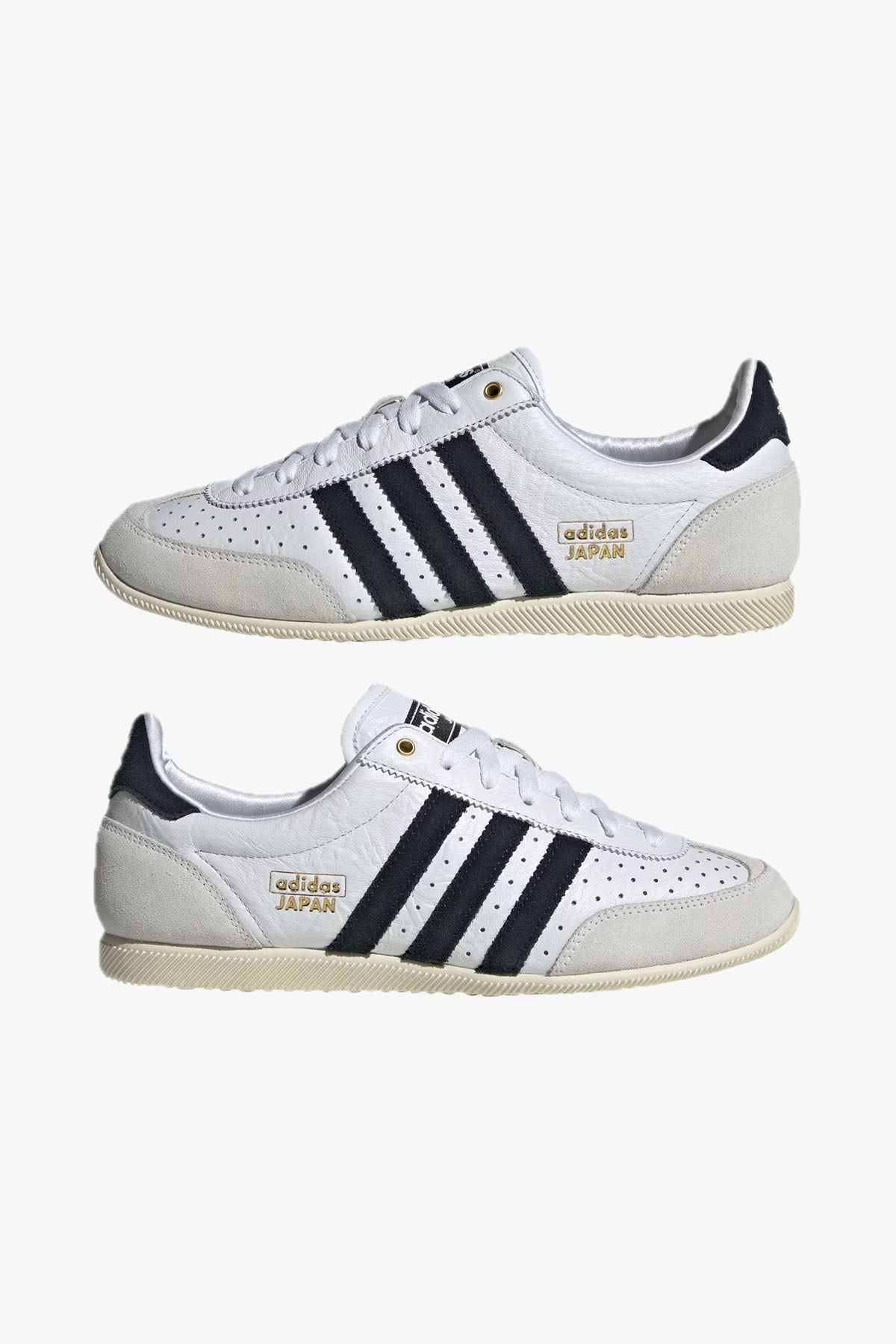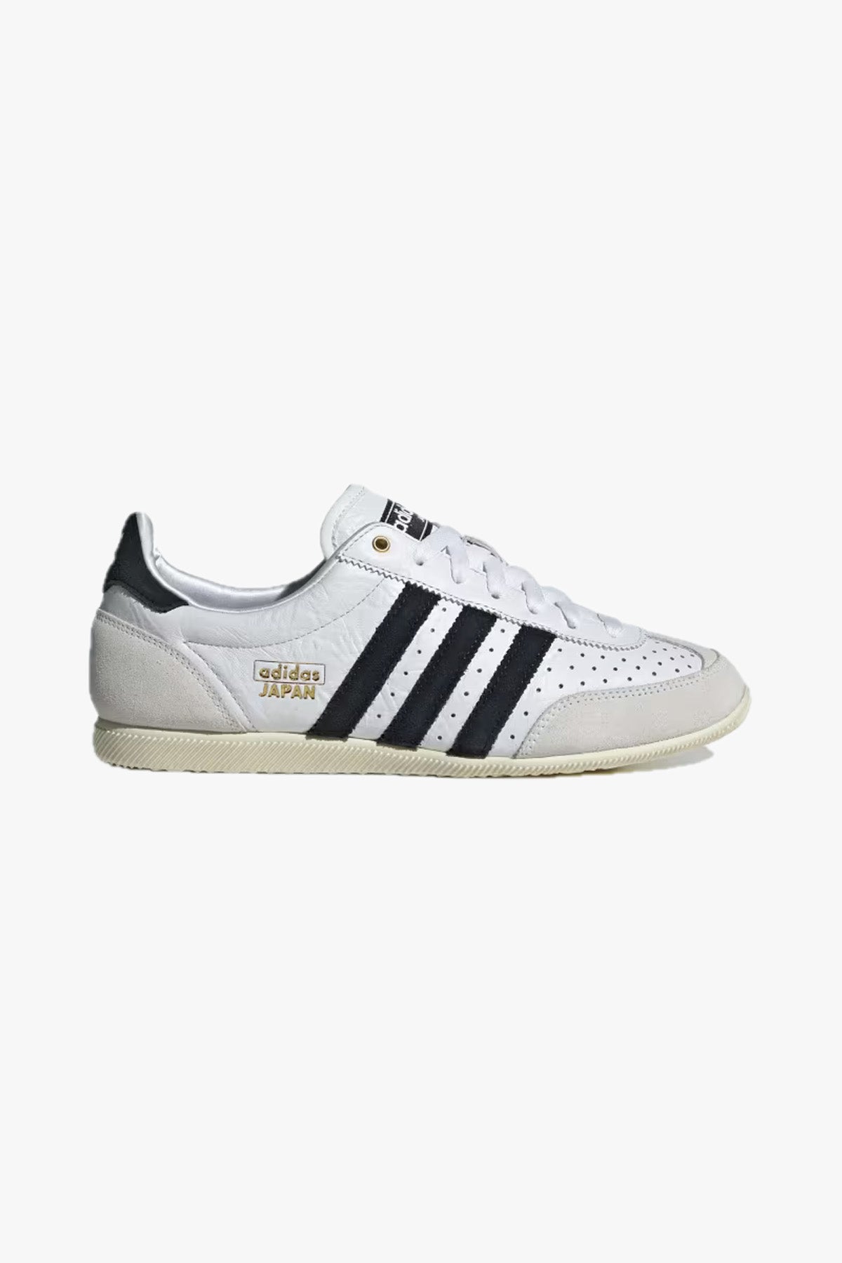 A timeless reissue that celebrates the iconic 1964 sporting event held in Japan. The Adidas Japan W stays true to its archival roots with a sleek, low-profile silhouette and retro charm. Crafted with a tumbled, perforated leather upper and accented by a double-stitched T-toe, these trainers combine vintage style with contemporary detailing. The Cloud White, Core Black, and Gold Metallic colourway brings effortless sophistication to every step.