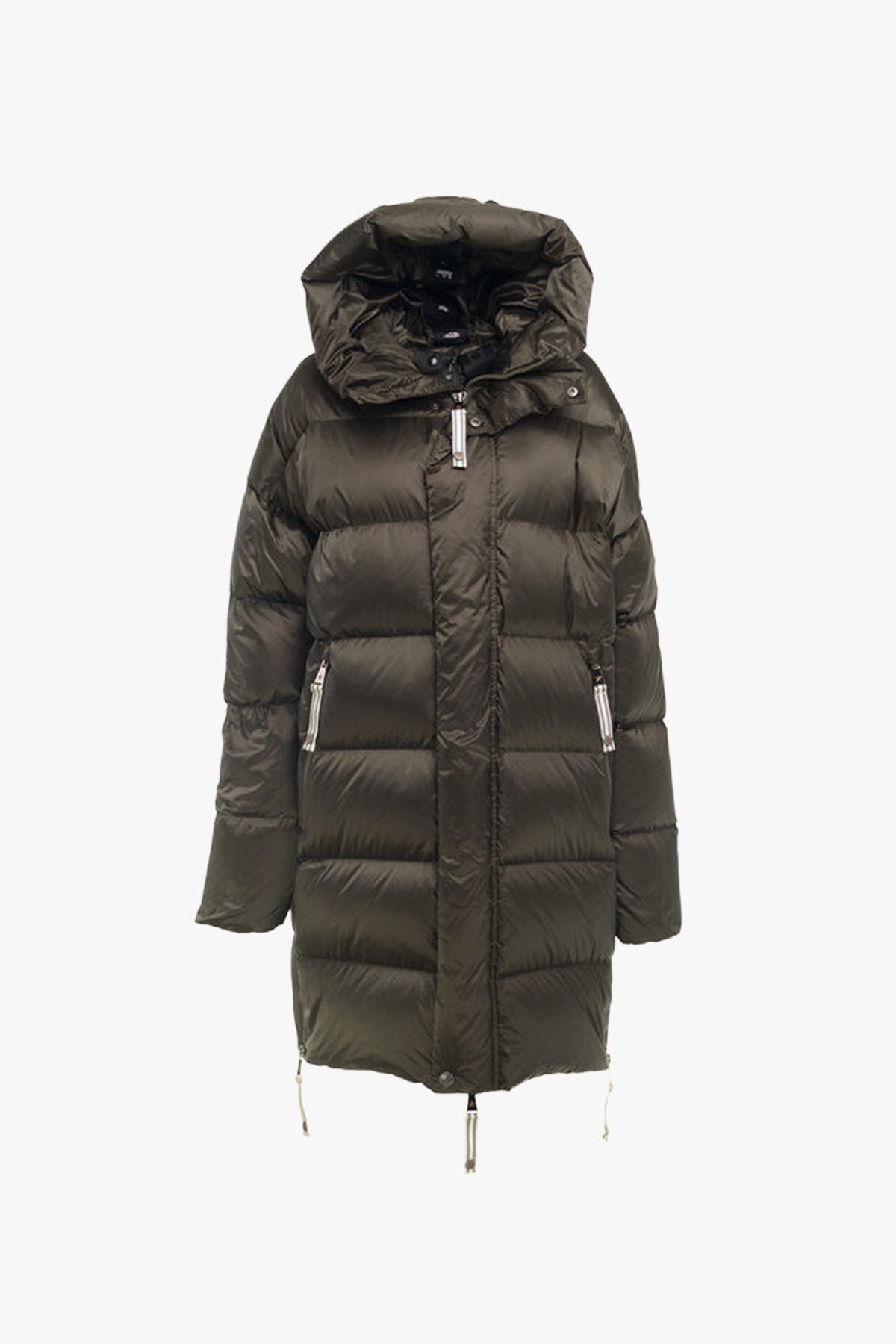 The Ginny Jacket is a stylish and functional winter favourite designed to keep you warm on even the coldest days. Combining practical details with a modern look, this long down jacket is the brand's bestseller season after season. The jacket features zip pockets on the sides, a zip split in the side seam and adjustable shoulder straps on the inside for comfort and flexibility. It closes with both a zip and snap buttons at the front, and has a large, snug hood to protect against the cold and wind.