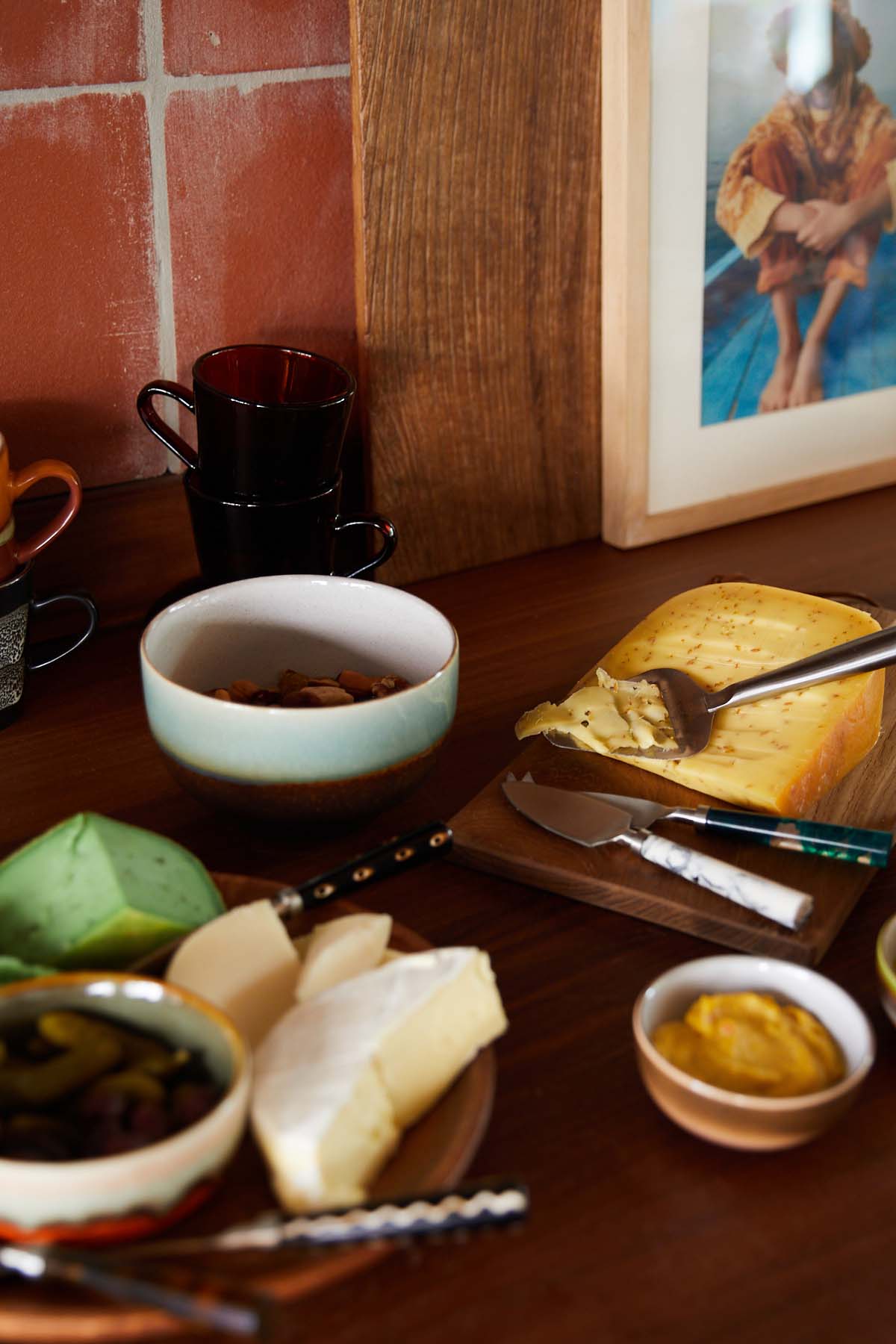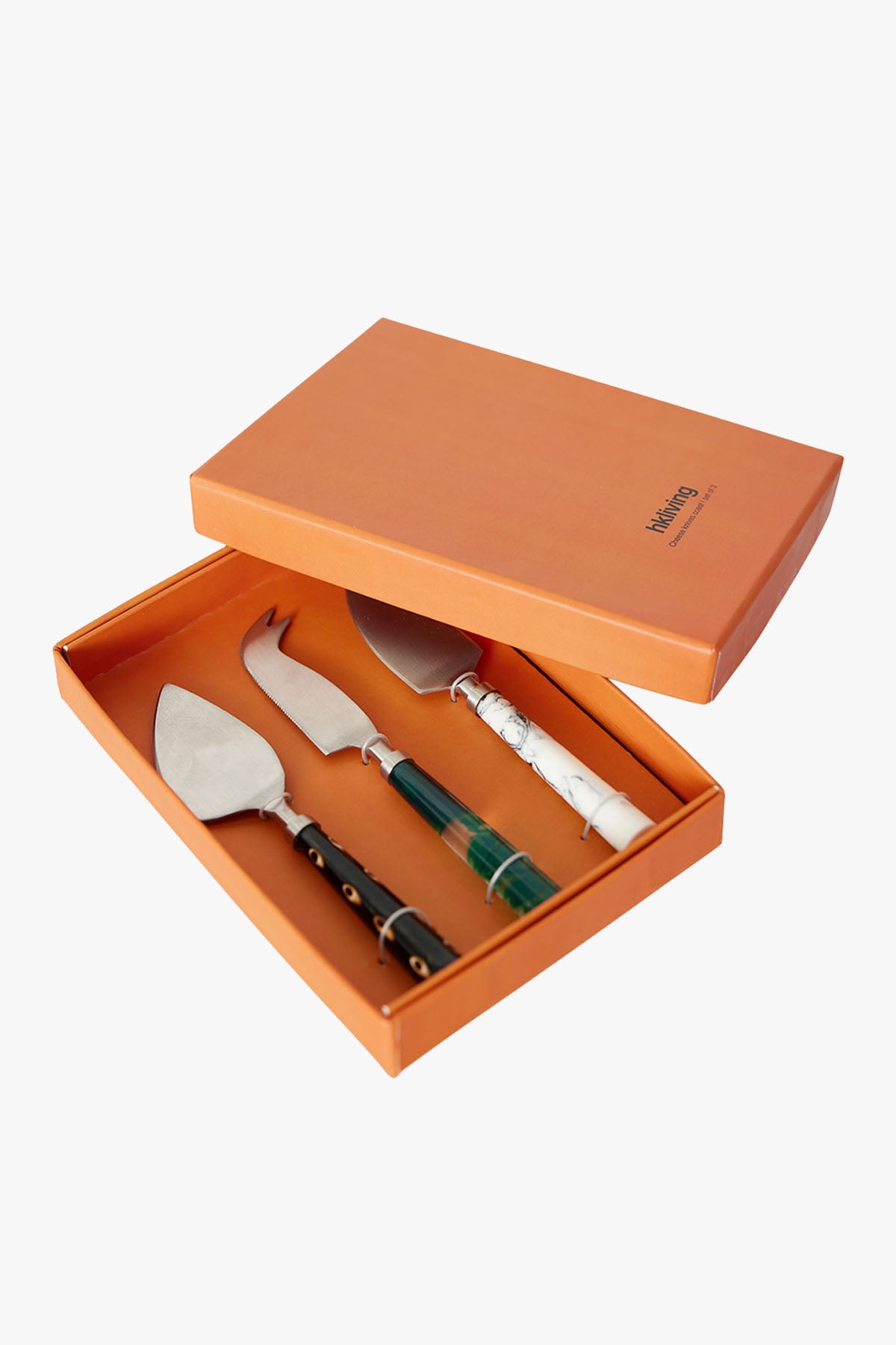 A set of three different cheese knives, each with a unique handle in fresh Coast colors. The knives have their own character and add a playful and modern touch to the cheese board - perfect for both everyday and social occasions.