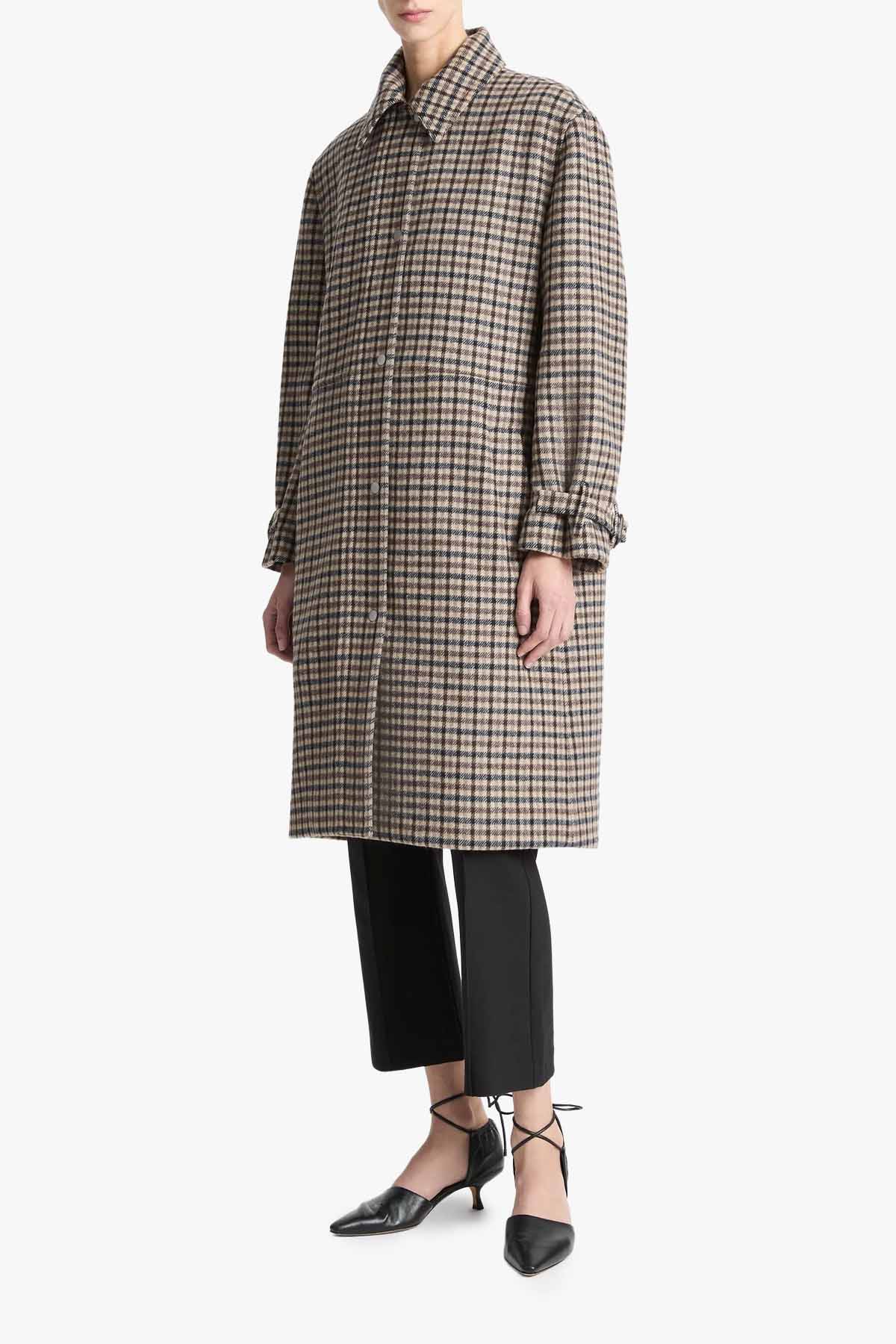 VINCE – Plaid Car Coat With Faux Leather Trim
