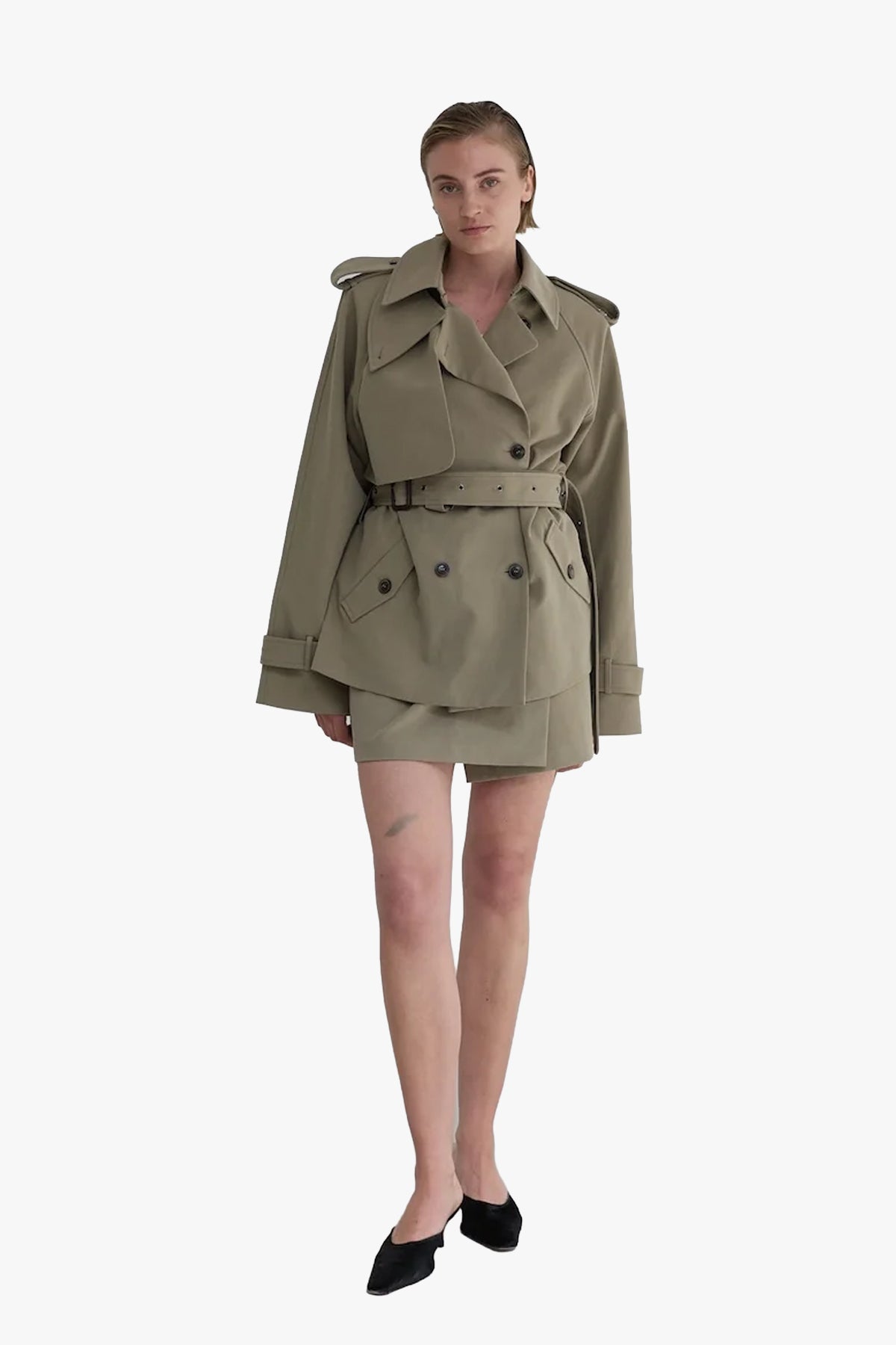 Majorstuen Trench Short er en moderne tolkning av den klassiske trenchcoaten, designet med en kortere silhuett for et oppdatert uttrykk. Den dobbeltspente fronten, brede slag og belte i midjen gir en flatterende og justerbar passform. Gjennomarbeidede detaljer som skulderklaff med knapp, justerbare ermestrammer og praktiske sidelommer balanserer skreddersøm med funksjonalitet. En allsidig trench som passer perfekt i overgangssesonger og til hverdagsbruk.
