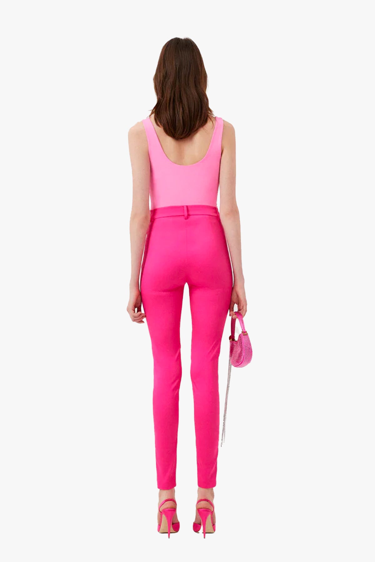 Super skinny trousers give a legging effect to a tailored pant, cut simply with a zip front and belt loops, free of pockets for a second skin look.
