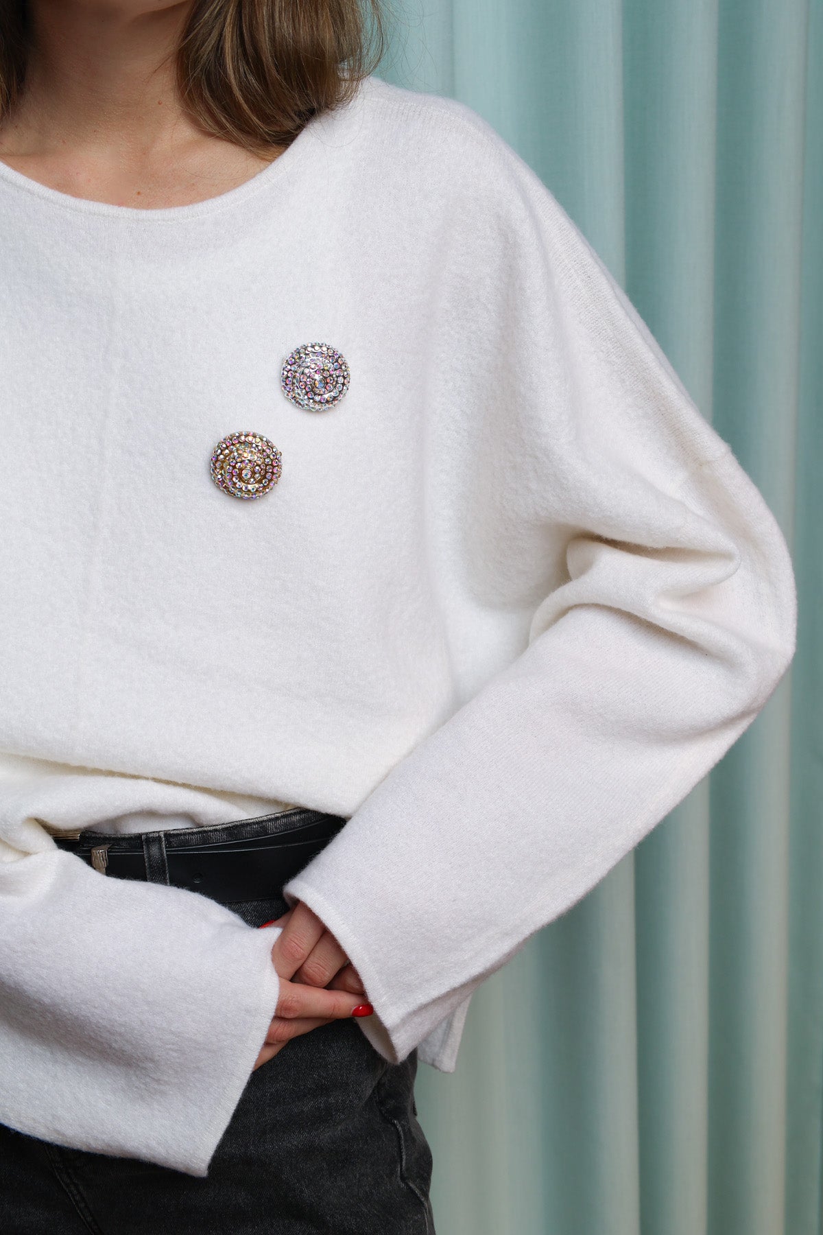 The Silver Le Soleil Brooch from PEARL OCTOPUSS.Y is an eye-catching piece of jewelry that sparkles with iridescent glass crystals that elegantly catch the light. Wear it as a statement piece on your favorite blazer, or pair it with the brand's box chain tie for a sophisticated and modern twist on the bolo tie.