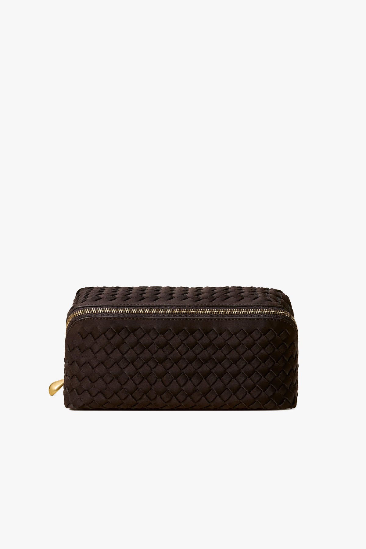 Caravan Medium Cosmetic Case fra NAGHEDI er et stilig og funksjonelt etui laget i håndflettet neopren i klassisk svart. Perfekt som sminke- eller toalettsak for reise, med romslig innside og strukturert fasong som holder innholdet organisert. Vesken har glidelåslukking, et midtrom med glidelås og fire åpne lommer, og passer like godt til flere dagers reise som til håndbagasje.