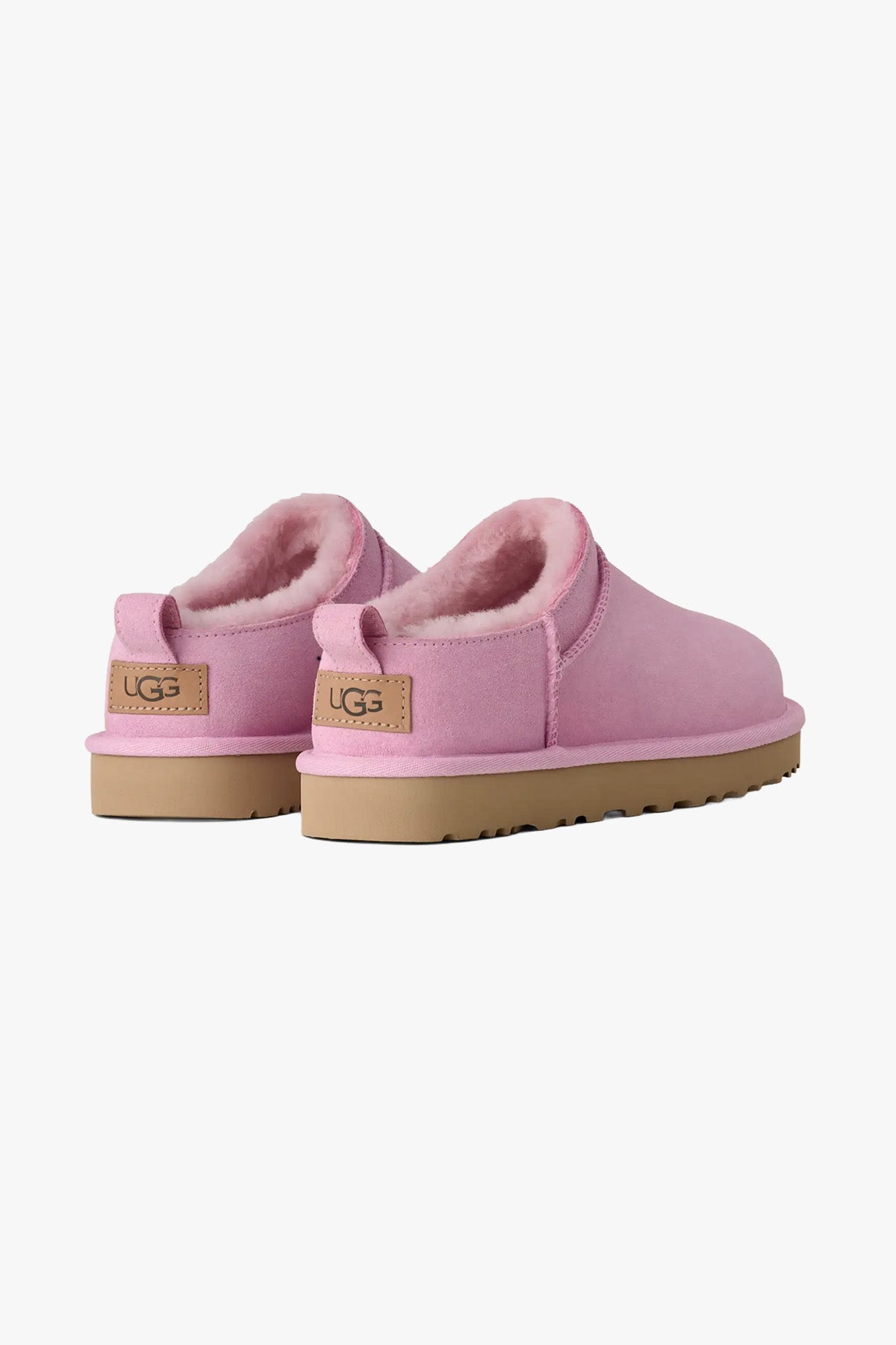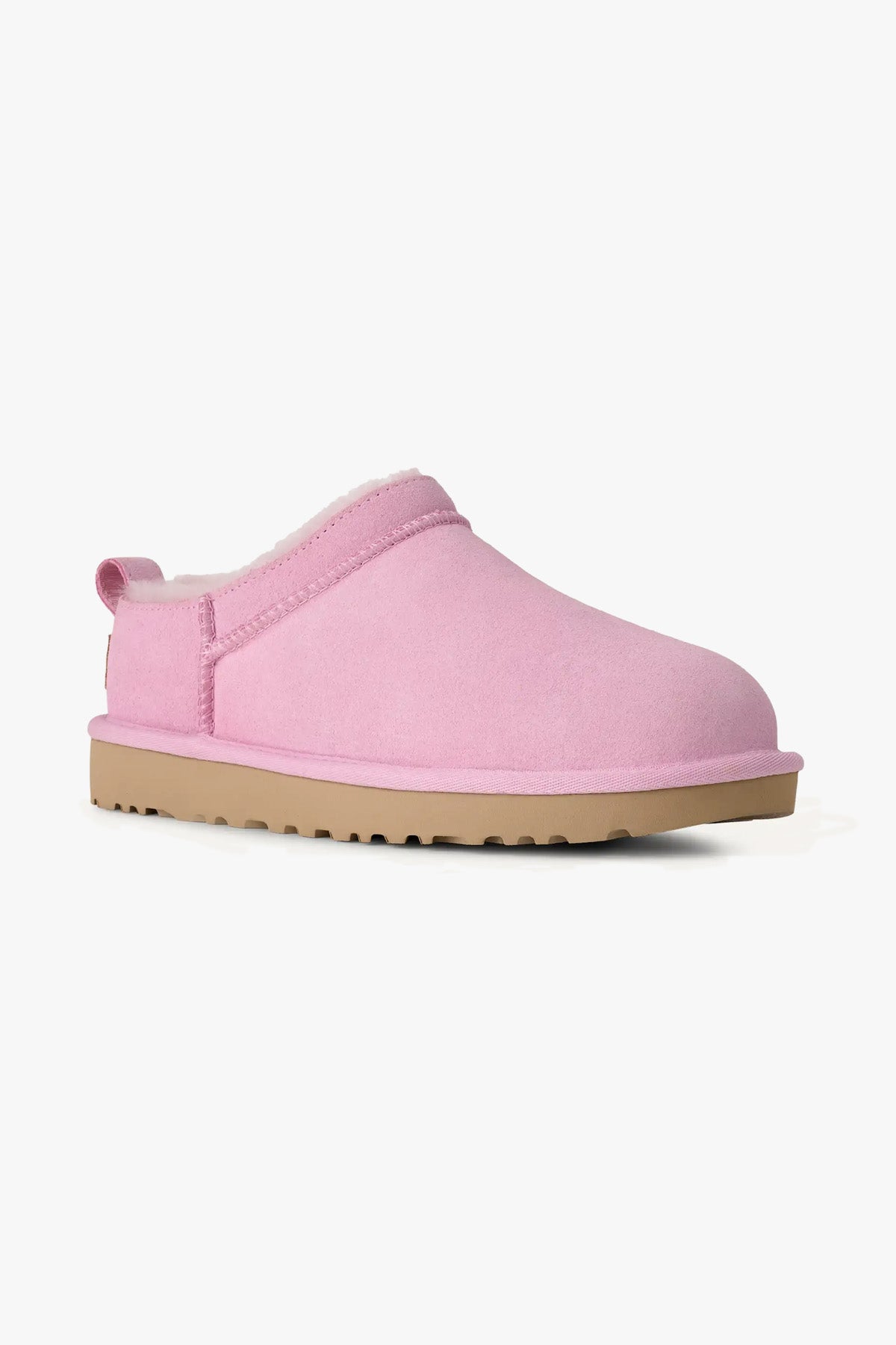 UGG Classic Micro gir en moderne tolkning av den ikoniske Classic Boot, med et lavere snitt og samme kompromissløse komfort. Overdelen i ekte semsket skinn kombineres med myk saueskinnsfôring som naturlig regulerer temperaturen. Resultatet er en lett og avslappet sko, perfekt både inne og ute.
