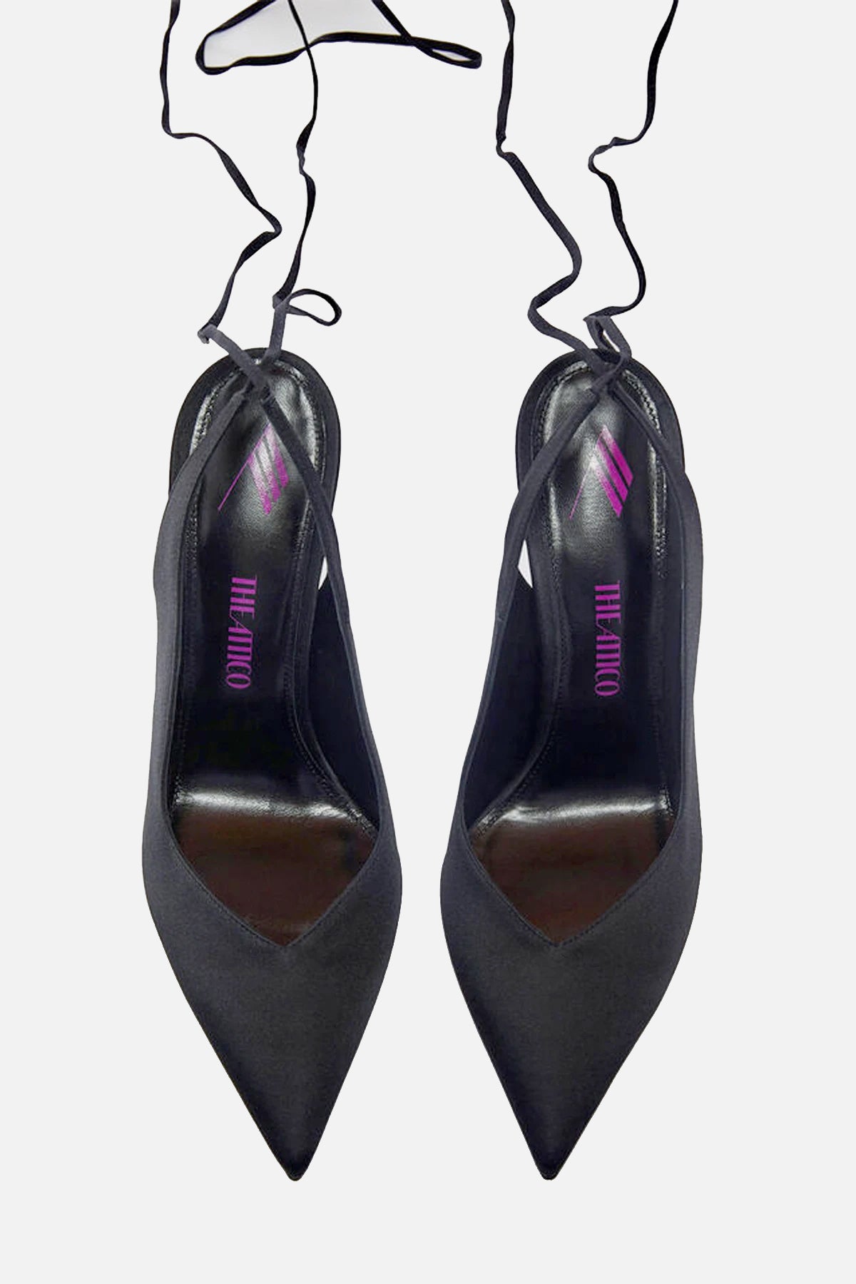 The Attico "Venus" black slingback with ankle strap, heel height 105mm