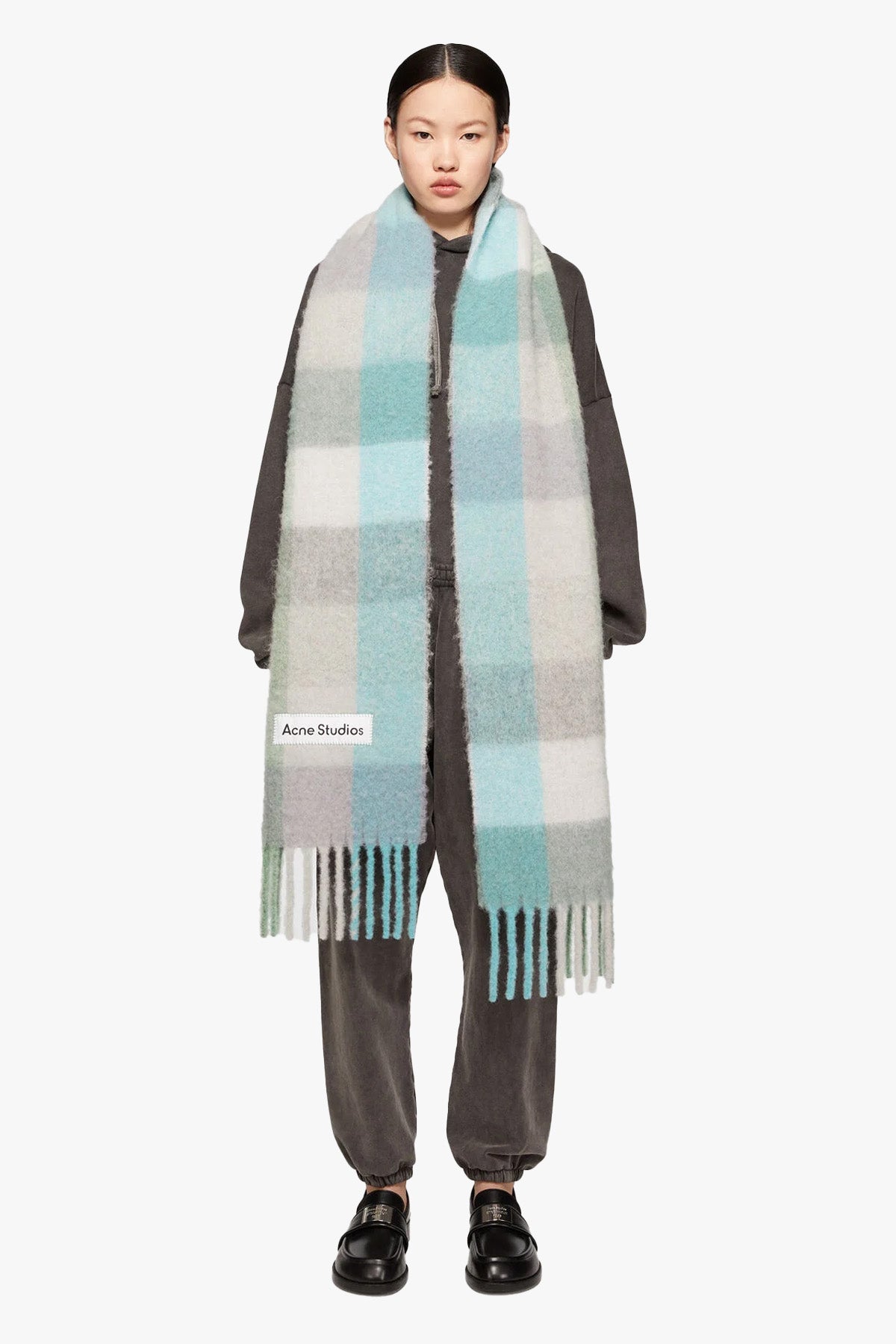 Checked scarf is made of a soft mohair blend with fringed ends. Detailed with an Acne Studios embroidered logo. Crafted from carefully selected material known for its soft and hairy fibres.