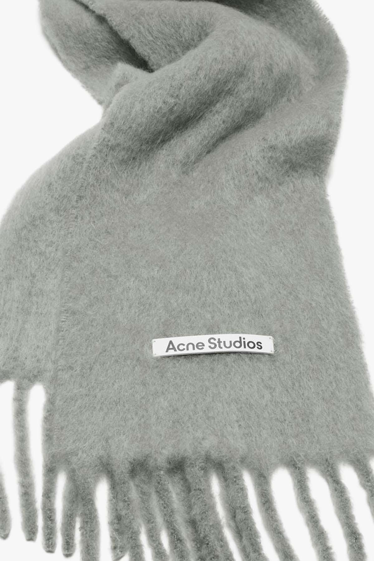 Scarf crafted from soft mohair with a hairy texture and warm hand-feel. Finished with fringed ends and an Acne Studios logo label.