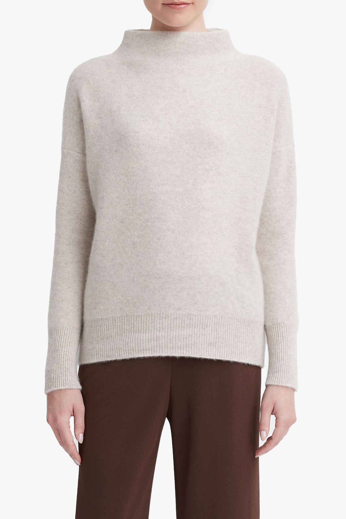 Crafted in two-ply cashmere yarn that is boiled for added warmth and a lofty finish, our signature plush funnel neck sweater is finished with an easy body, dropped shoulder, and fitted sleeves.