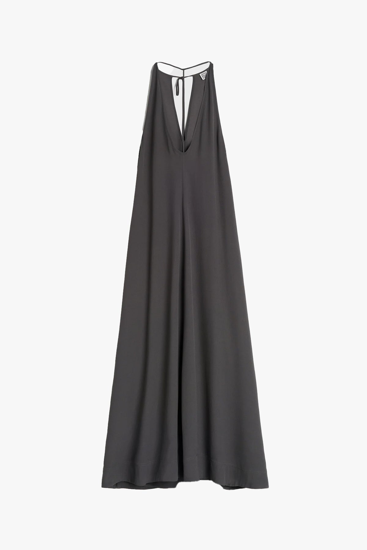 TOTEME dress suspended from fine straps arranged into our signature T. It is made from fluid crepe with a soft satin reverse and has front and back V-necklines and practical side pockets before widening effortlessly toward the ankles. Add sandals for an outdoor dinner.