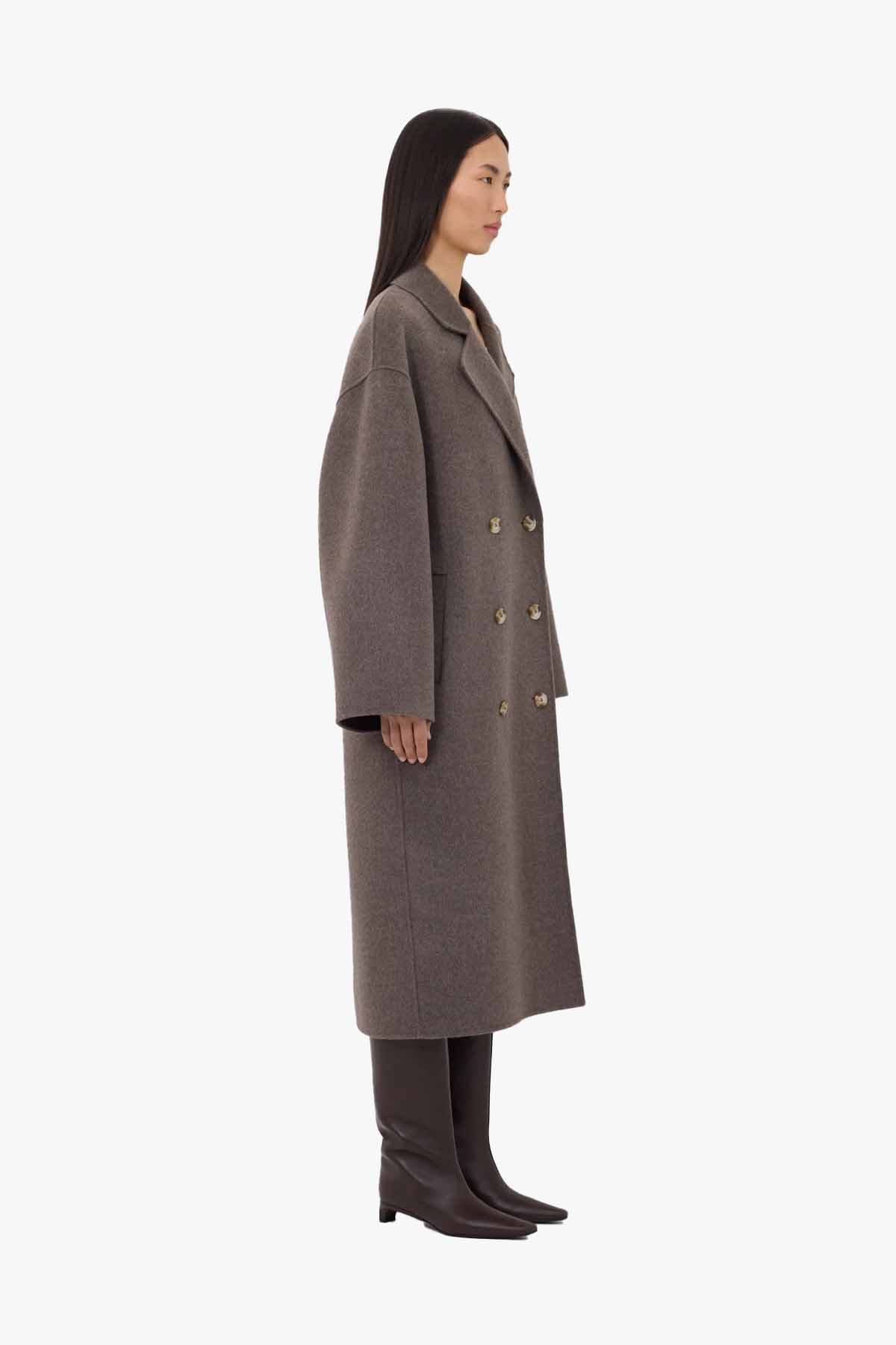 This coat is a timeless Loulou de Saison style made of a soft wool cashmere drap. Its oversized outlines are highlighted by details including a double breasted front opening, notch lapels, drop shoulders, welt pockets and a back vent.