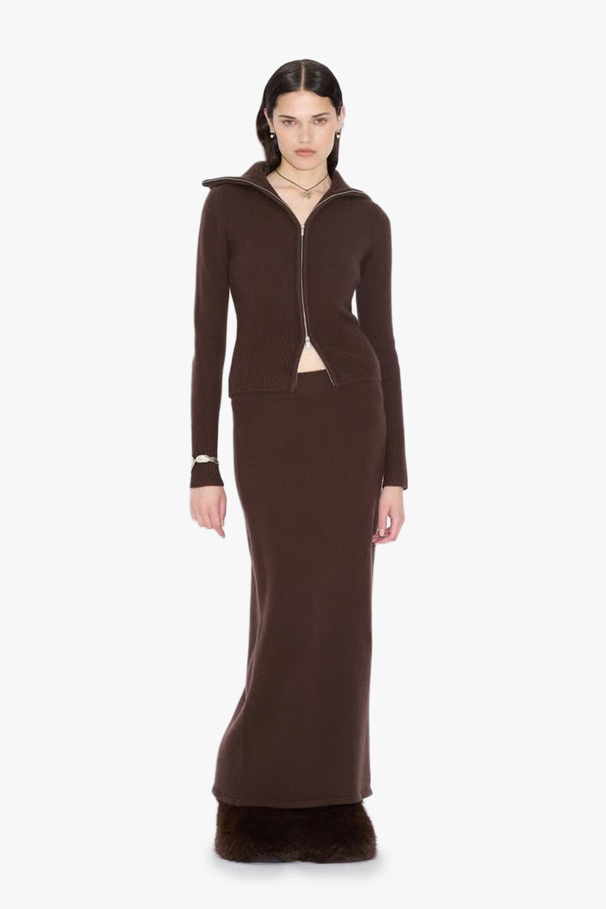 Made from a lightweight wool knit, the Line Wool cardigan has a wide collar and a two-way zipped front.