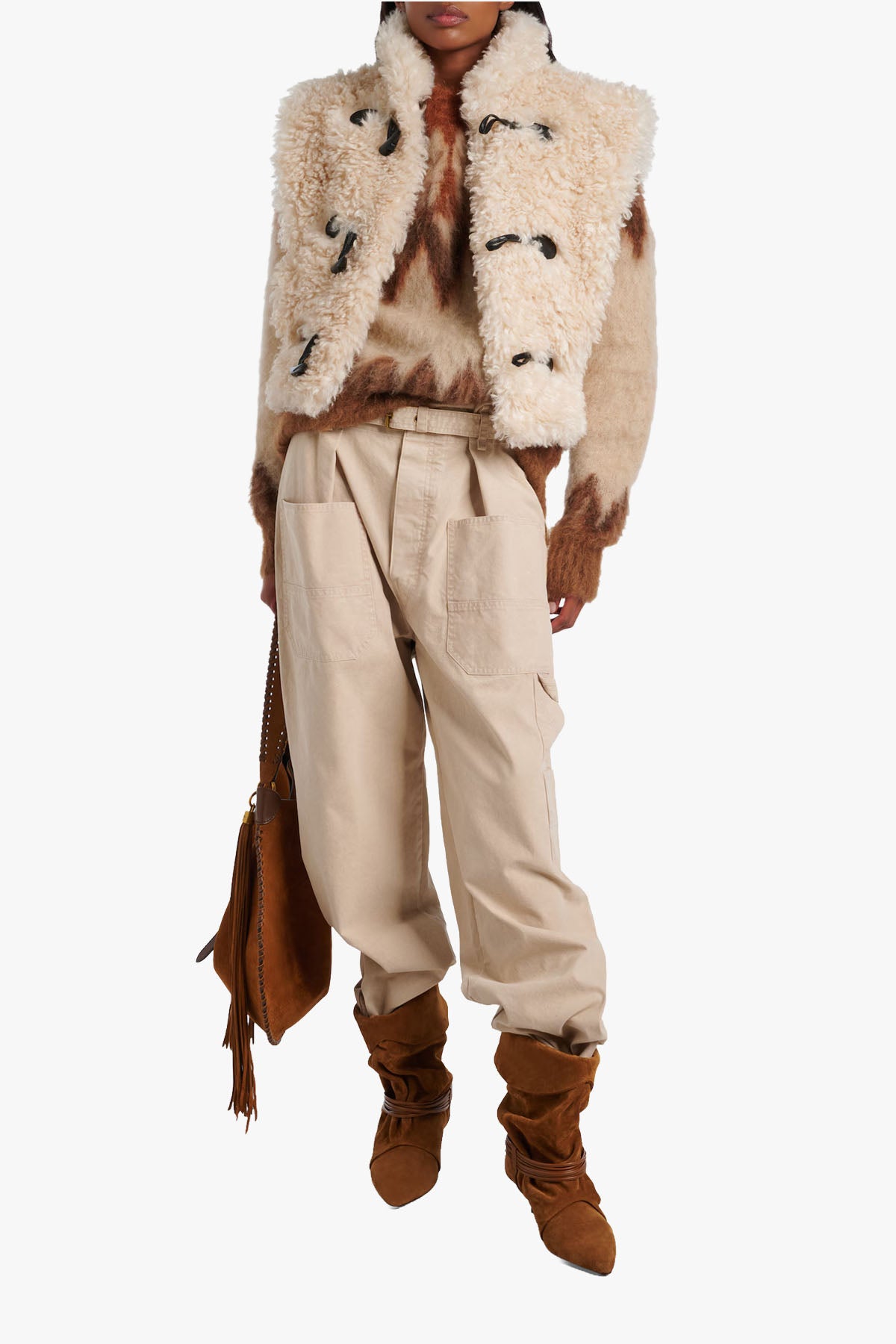 Alisa gir et mykt og behagelig lag til sesongen. Den har en polstret konstruksjon med bouclé-lignende tekstur og lukkes med tydelige toggle-detaljer for et uanstrengt, moderne uttrykk.