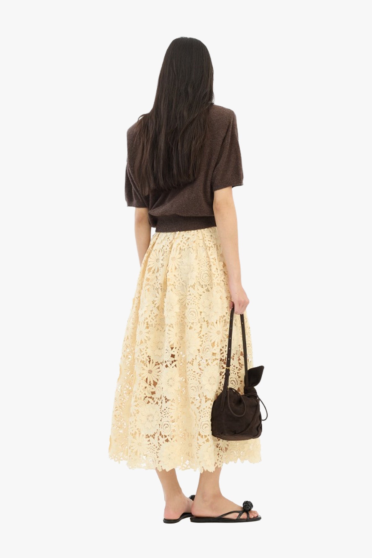 Rotate by Birger Christensen - 3D Lace Midi Skirt Italian Straw