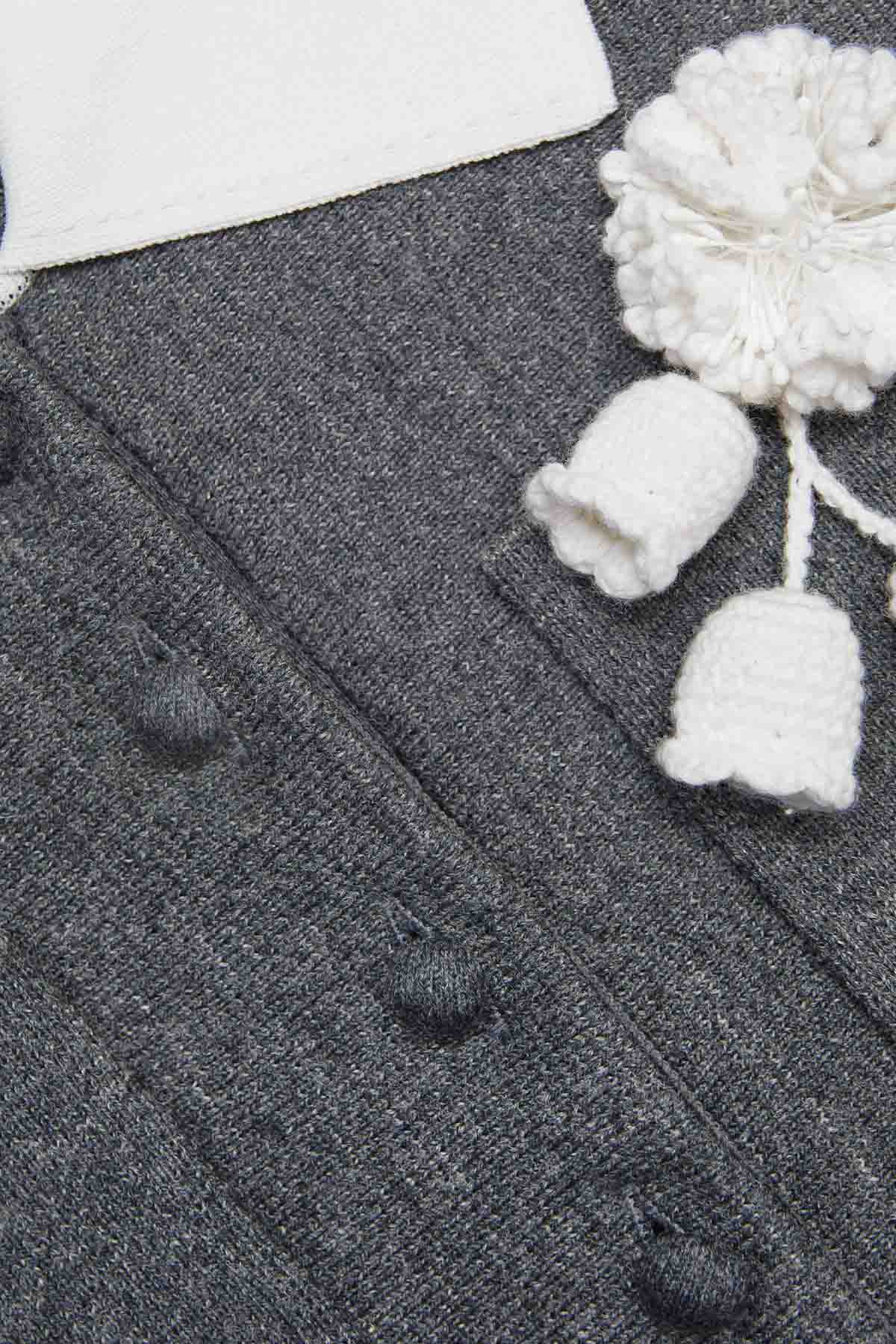 SELF-PORTRAIT - Grey Crochet Flower Collared Knit Mini Dress