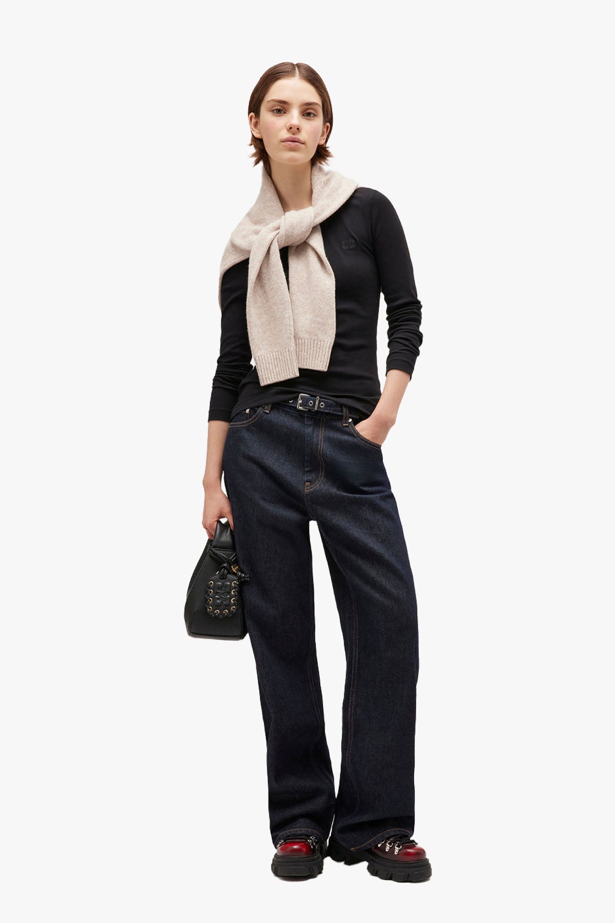 Soft Cotton Rib Long Sleeve fra Ganni er en tidløs base laget i myk, ribbestrikket økologisk bomull med stretch for en komfortabel passform. Den har rund hals, lange ermer og en subtil GANNI-logo som tilfører et moderne preg. Et allsidig plagg som fungerer like godt alene som under en blazer eller jakke.