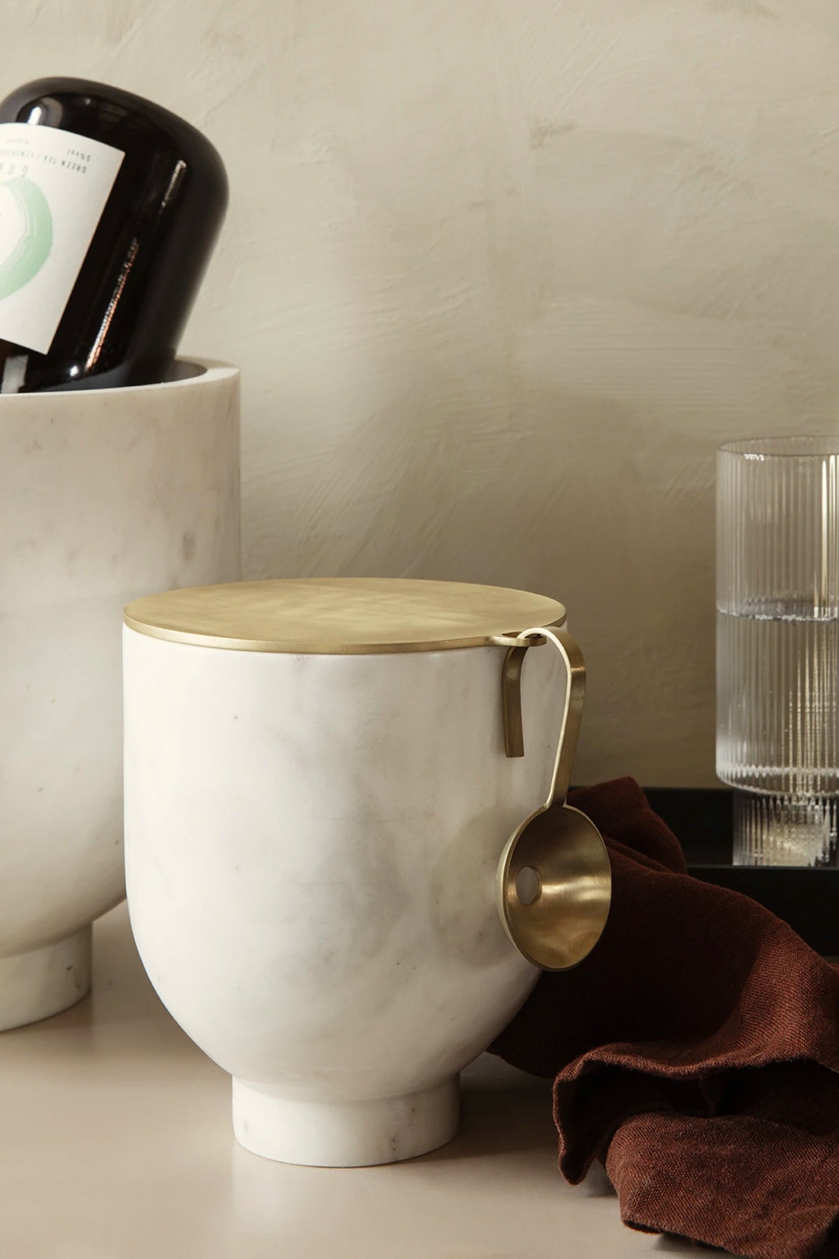 Serve your party guests in style with the Fein Ice Spoon. The head of the spoon features a hole for excess water, so you’ll only ever be adding ice cubes to your drink. The ice spoon is the perfect companion to the Alza Ice Bucket, its matte brass finish matching the ice bucket’s lid, from which it also can hang.