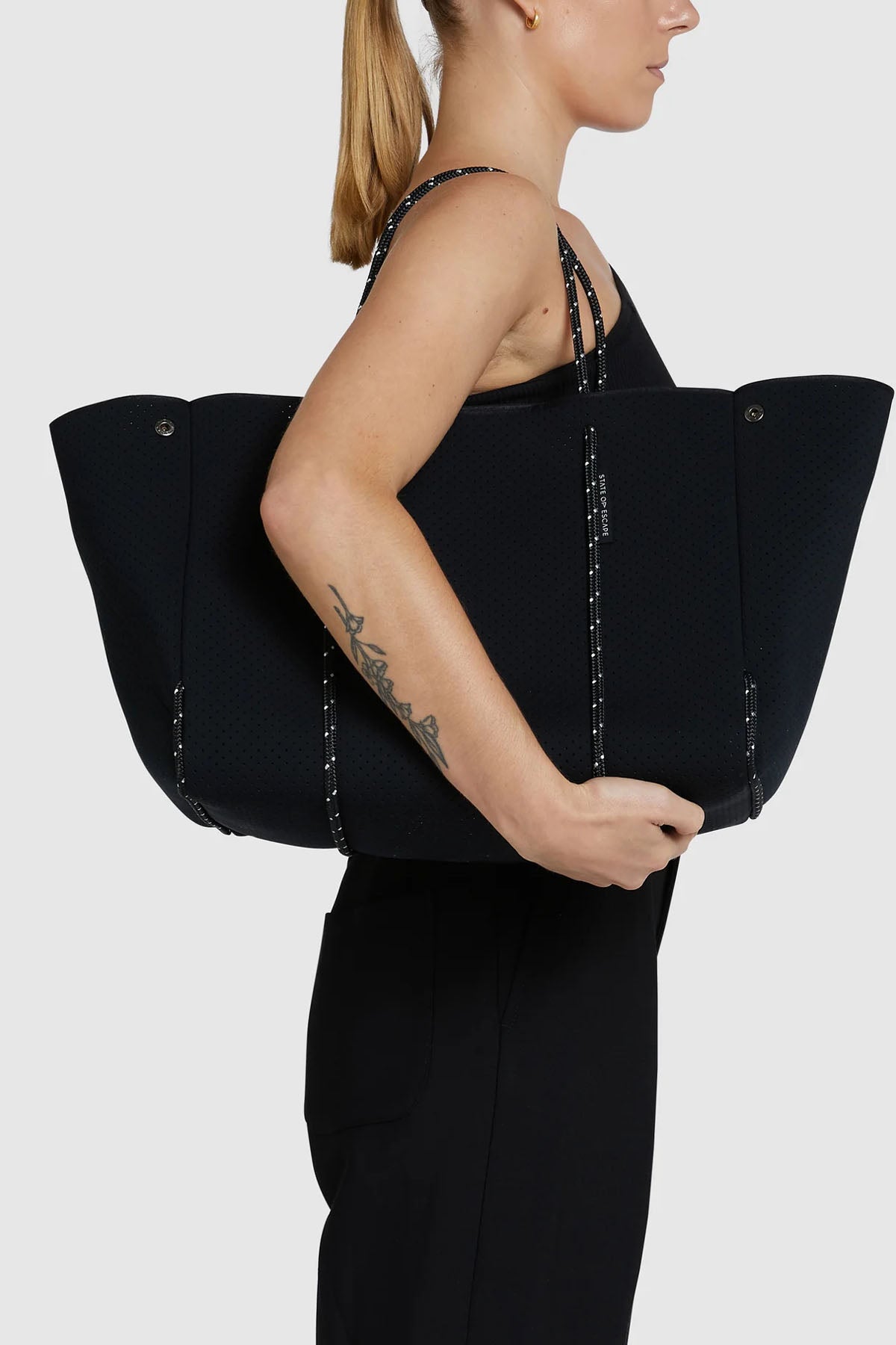 Confidently simple and distinct. Lightweight for mind and body. The State Of Escape tote is the original carryall neoprene tote bag. With a nifty hidden internal pouch to keep valuables safe. Escape to your happy place, within or faraway.