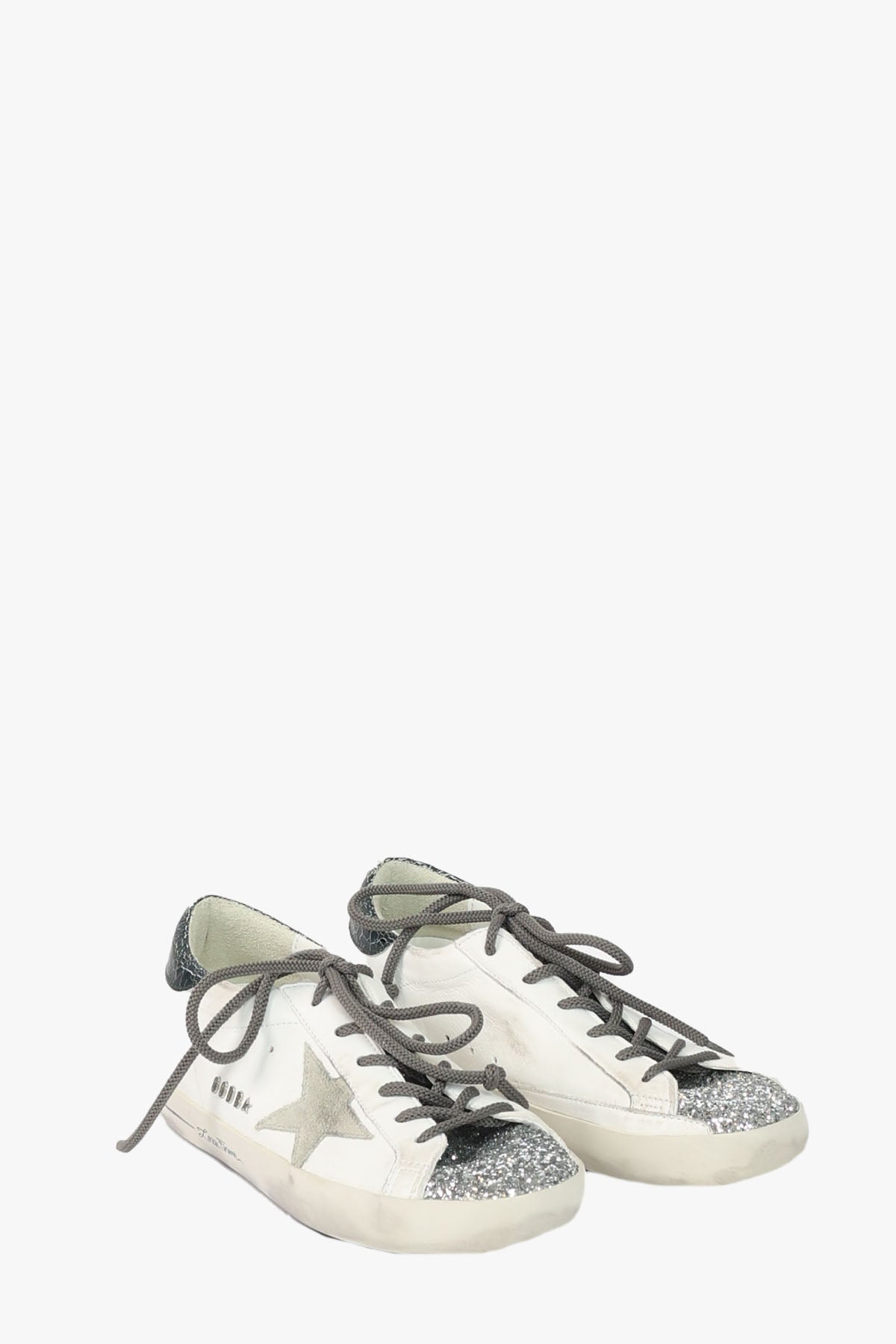 Golden Goose Super-Star Nappa Upper Glitter Toe Suede Star Crack Laminated Heel Metal Lettering Signature Foxing
