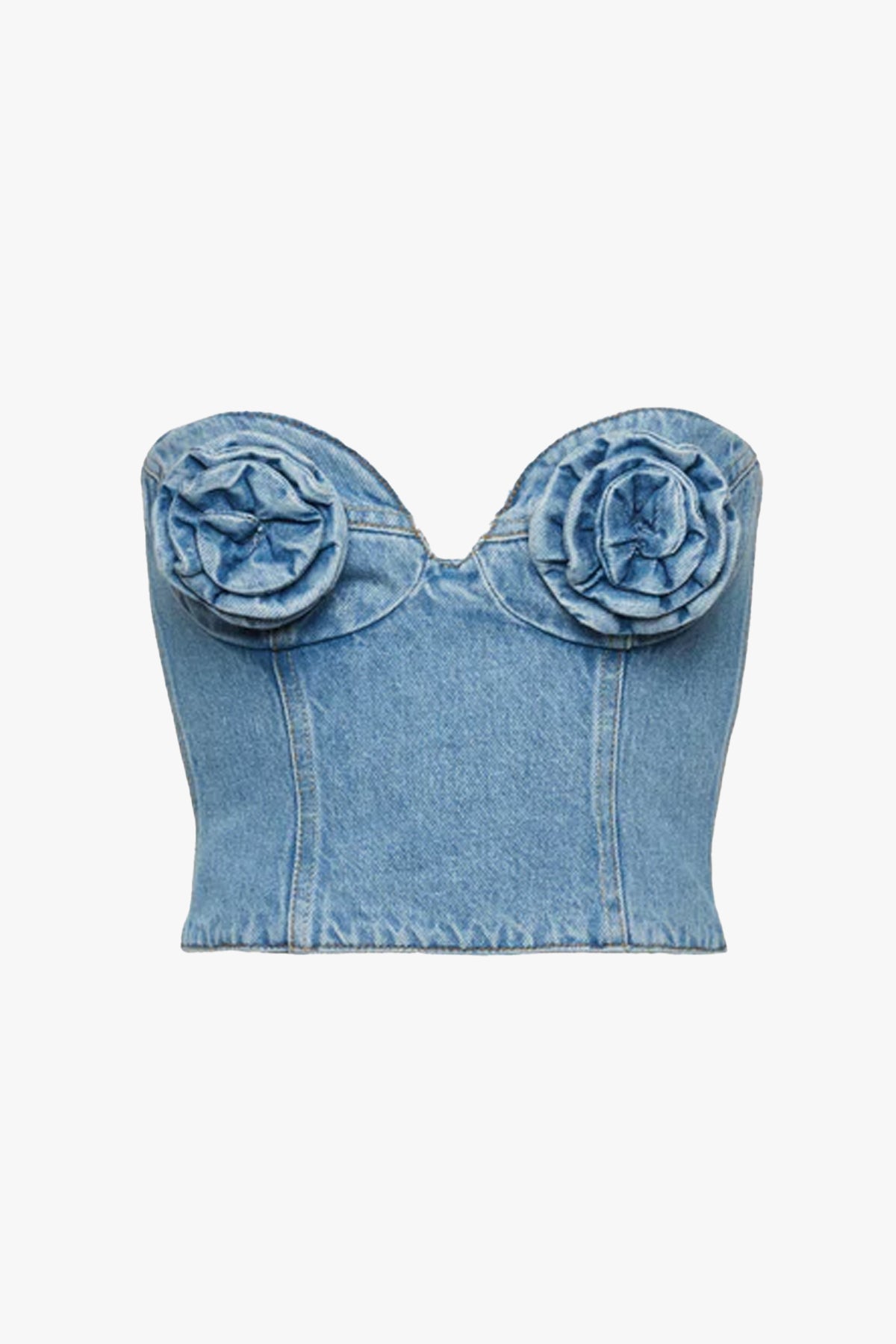 Magda Butrym Flower Bustier Denim Corset Top 07