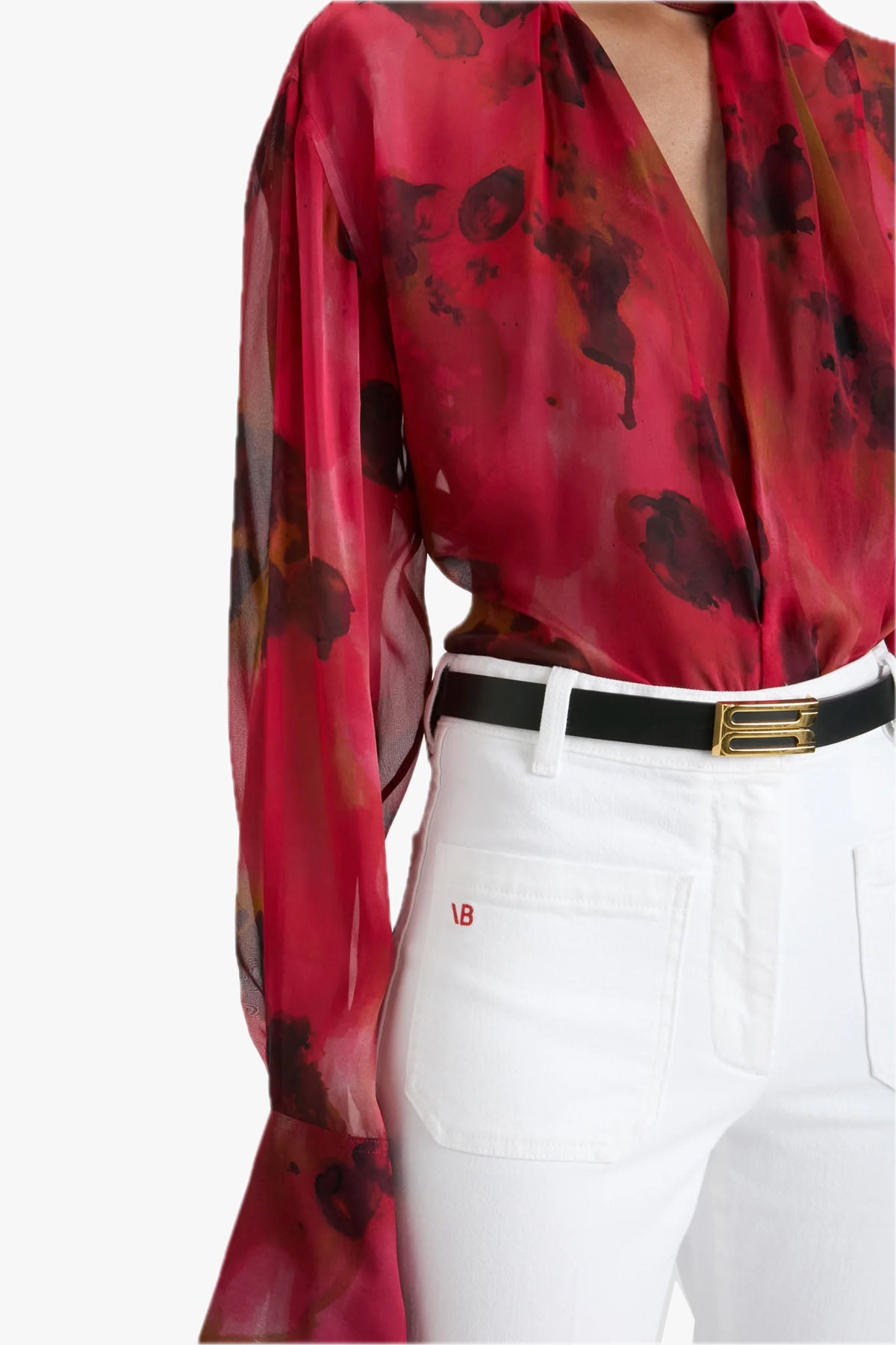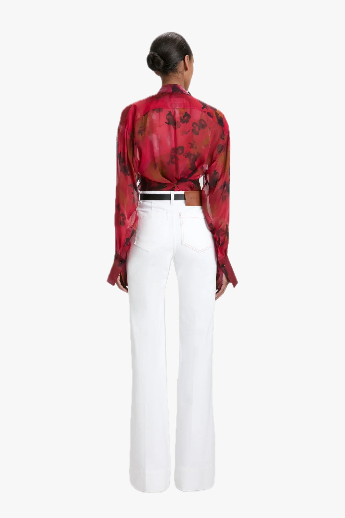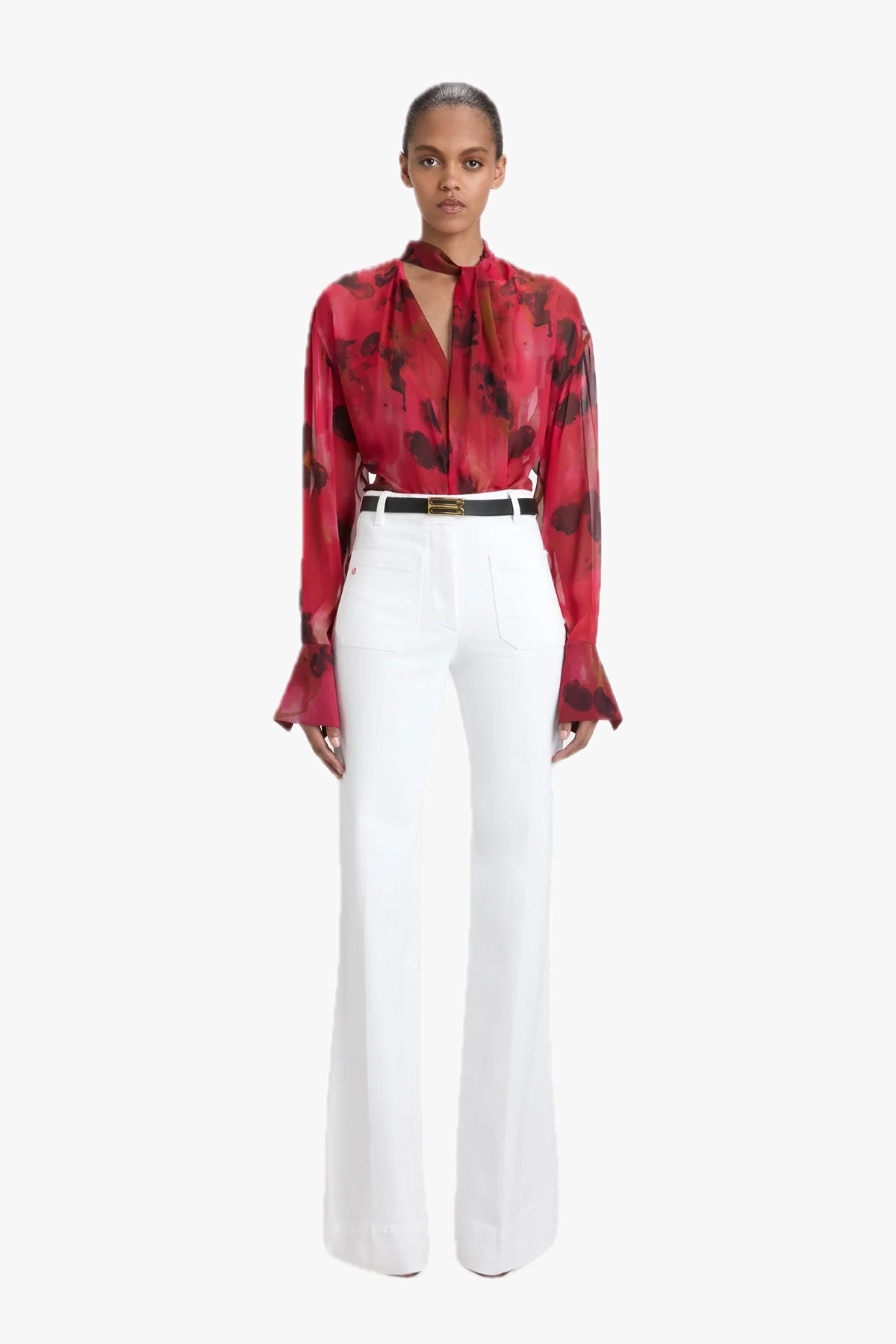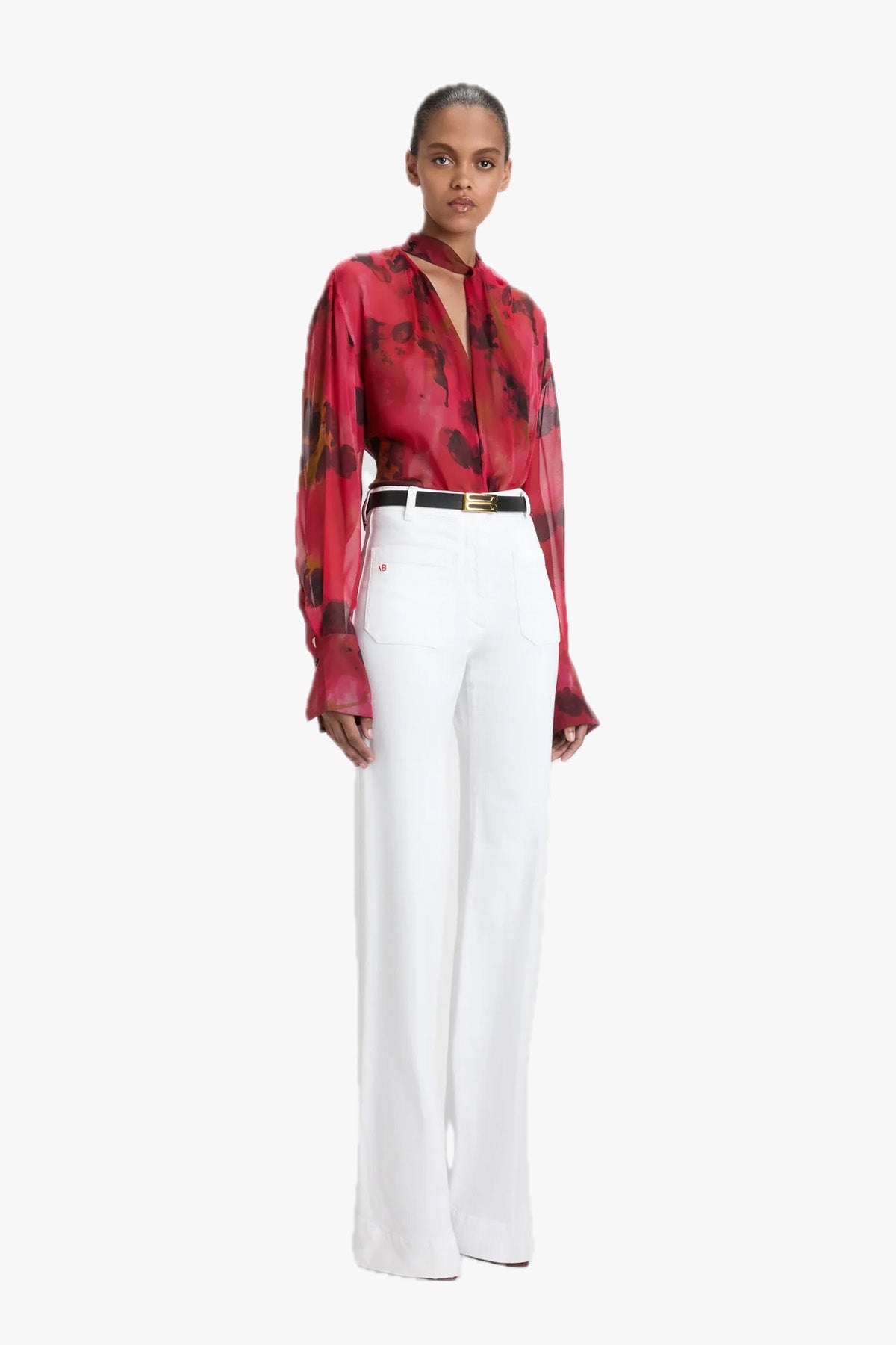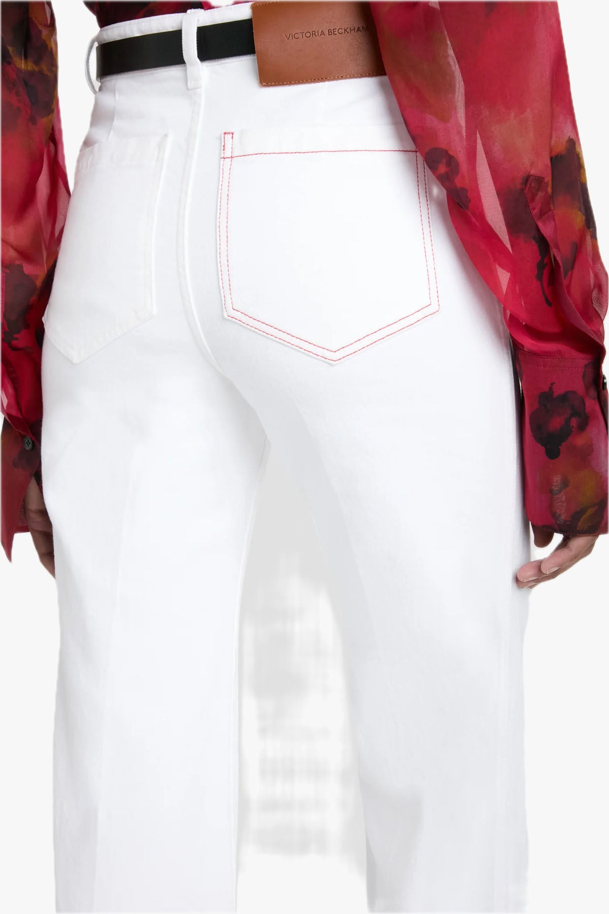 Cut to flatter and elongate, the Alina Jean – Long features a slim fit through the knee and a subtly flared hem. Crafted from white washed denim with slight stretch, it’s detailed with tonal topstitching, structured patch pockets, and signature VB touches like red embroidery and a branded leather patch. The 6cm internal hem allows for effortless length adjustment to suit any heel height.