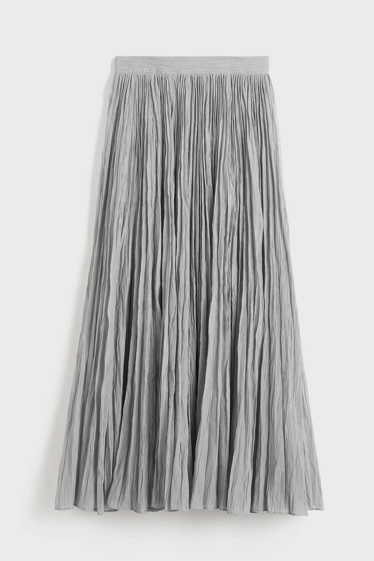 Long TOTEME skirt in a semi-sheer, crinkled fabric that is also meticulously pleated to create tactile volume. It is made from a fine organic-cotton blend that is partially lined with an inner skirt and fastened with a concealed zipper. Wear it with a tank and sandals.