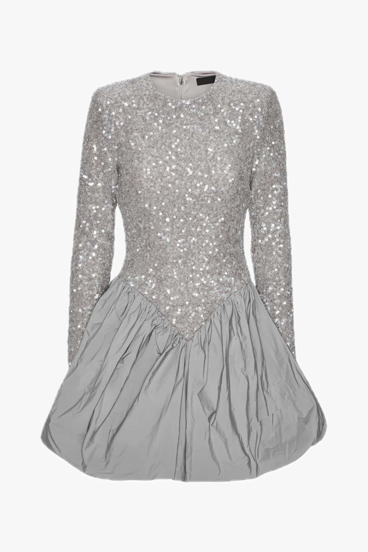 Make a statement with the Sequin Mini Dress from Rotate by Birger Christensen. This eye-catching mini dress features shimmering sequins in a soft light grey hue, with long sleeves and a flattering silhouette. The bodice is detailed with a signature V-cut at the waist, creating an elegant transition to the skirt and enhancing your shape. Perfect for festive occasions, this dress pairs beautifully with heels and a small clutch for a complete party-ready look.
