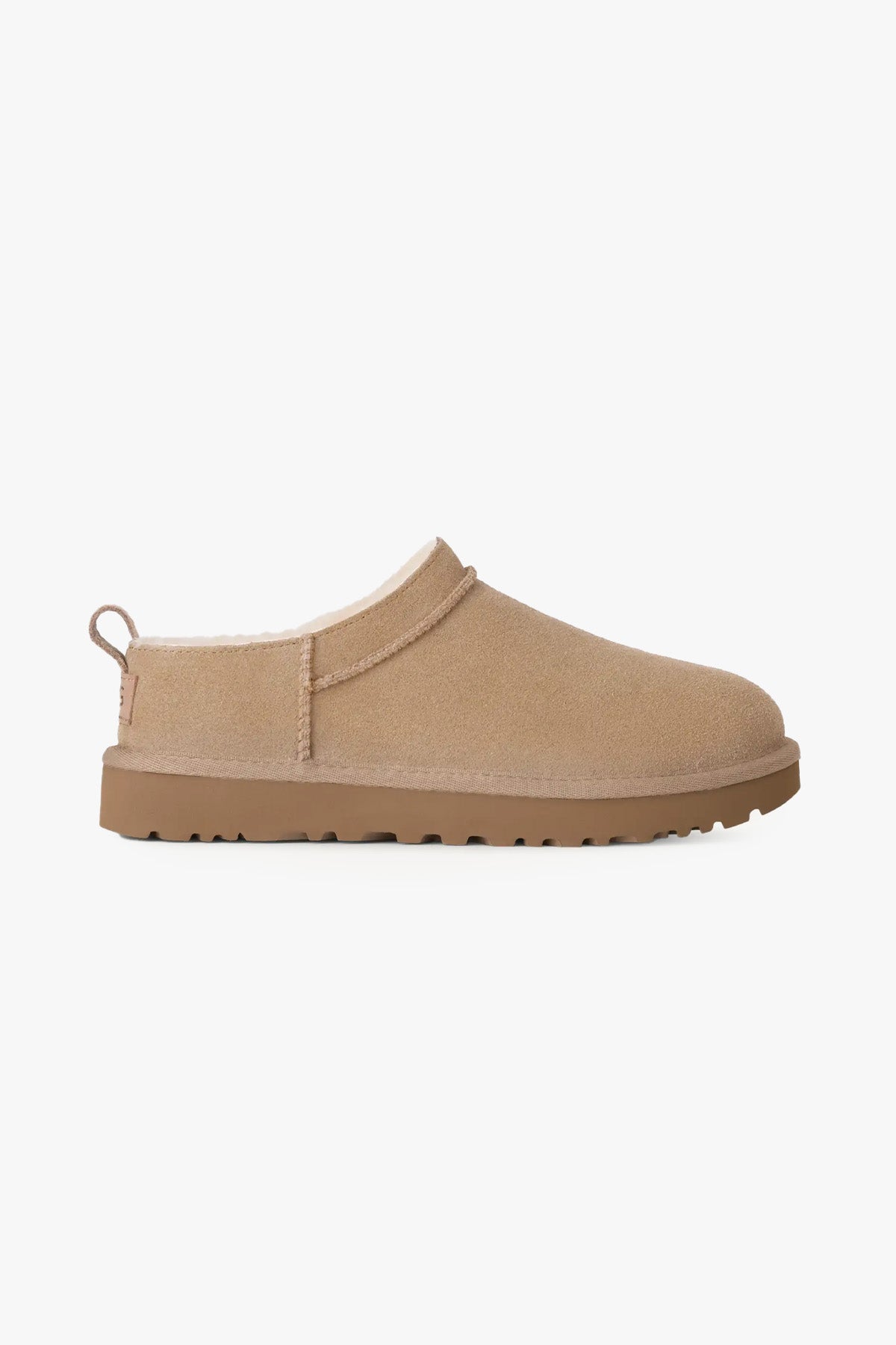 Our Classic Micro reimagines our fan-favorite Classic Boot with a new, low-profile design (and high-profile comfort). It has a genuine suede upper lined with mega-soft sheepskin that naturally regulates temperature, so you can wear socks — or not. The lightweight sugarcane EVA outsole delivers effortless support and adds that easy slipper feeling to every out-of-the-house venture.