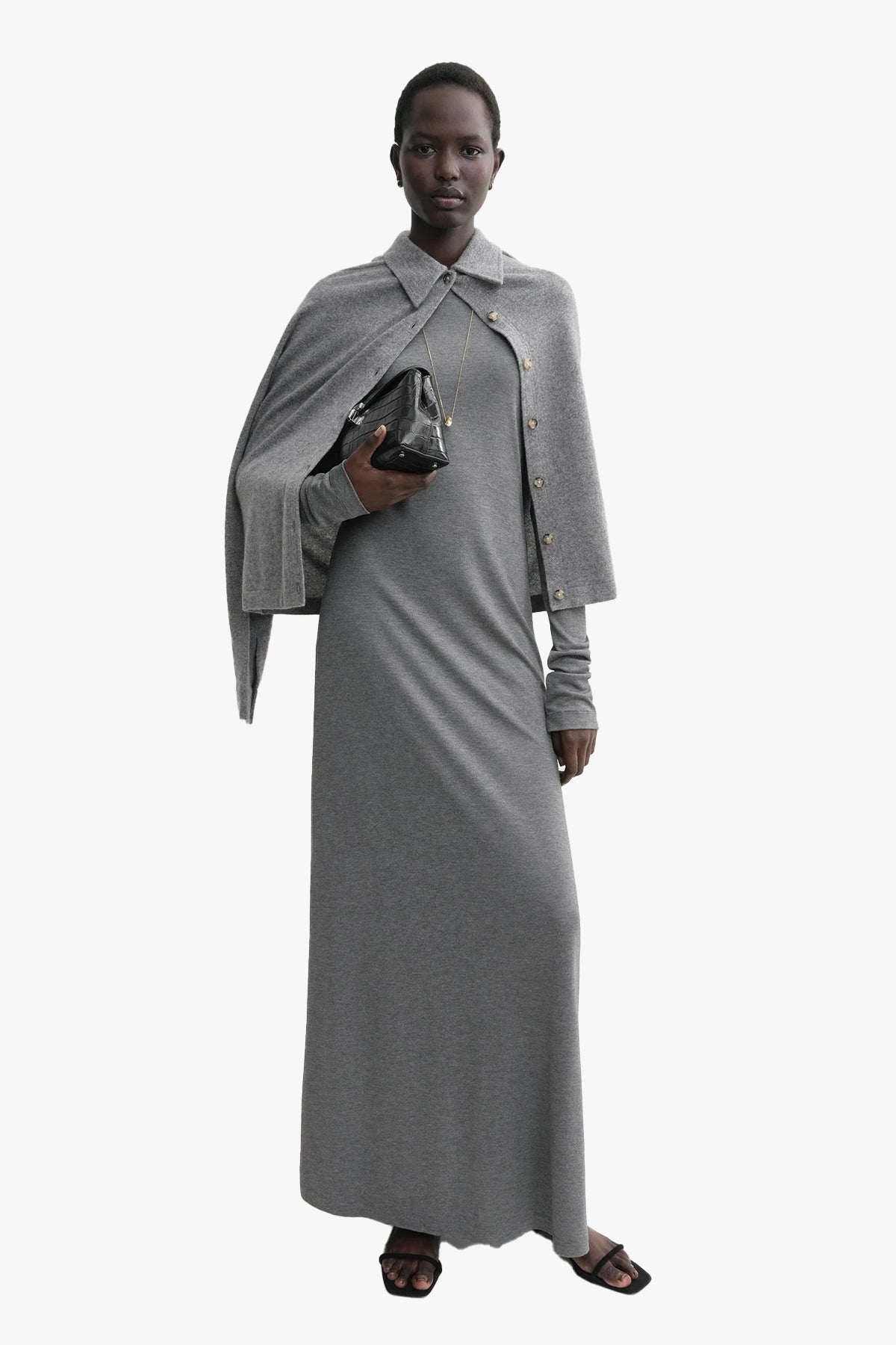 TOTEME slip-on dress marries the ease of a long-sleeved, crew-neck T-shirt with the elegance of a floor-sweeping silhouette. It is made from a mid-weight, soft Lyocell jersey with subtle ribbing at the round neck. Dress it up with heels or down with trainers.