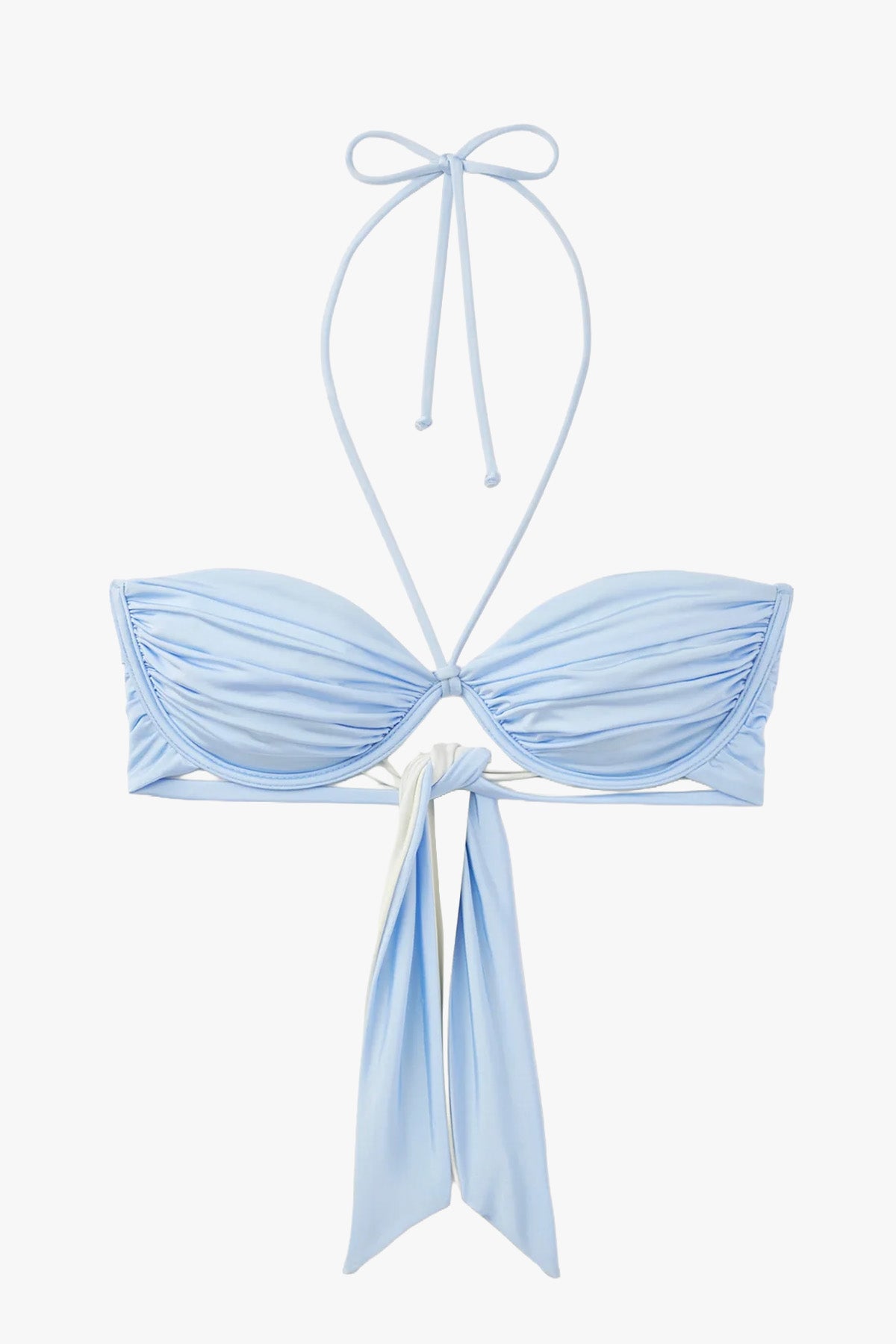 Seaquelle Billow Bikini Top kombinerer et feminint uttrykk med moderne eleganse. Den myke perleblå tonen gir et friskt og eksklusivt preg, mens den draperte Billow-silhuetten skaper vakker form og bevegelse. Designet av norske Seaquelle forener skandinavisk enkelhet med komfort og gjennomførte detaljer.