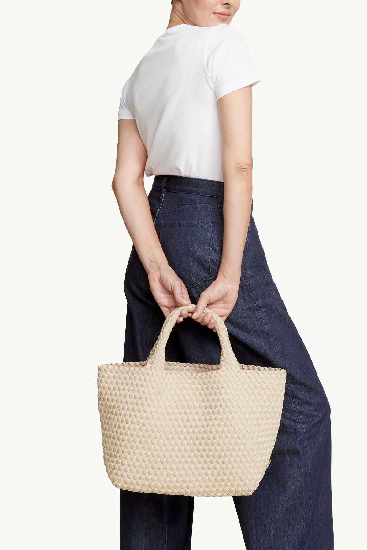 Their bestselling classic St Barths Medium Tote is made from handwoven strands of neoprene. Use the matching pouch to stash your essentials or as a clutch for a night out!