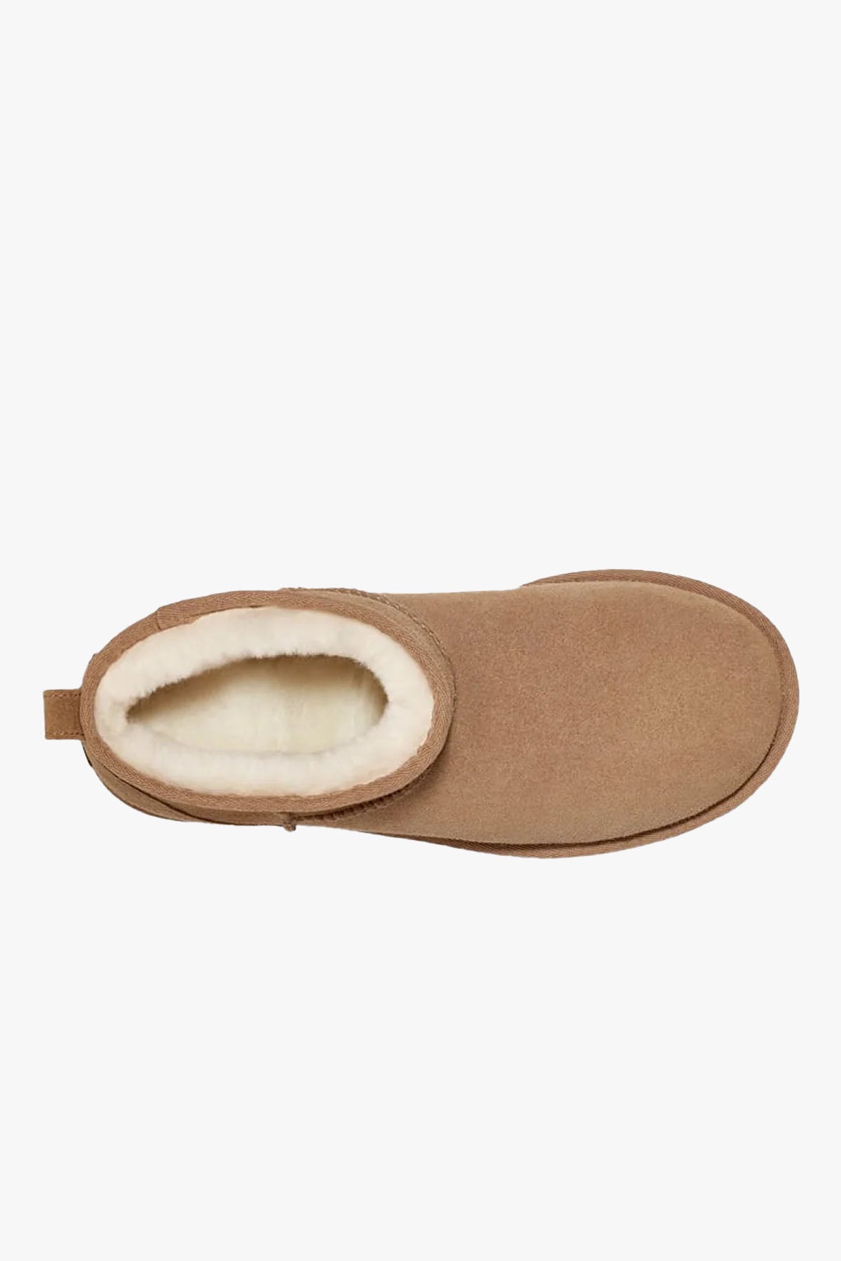 A modern interpretation of our icon, the Ultra Mini reaches new heights with a leg-lengthening 2" platform. Offering a bolder look than ever, it's made with the same rich suede as the original, plus our UGGplush™ wool blend for signature softness.