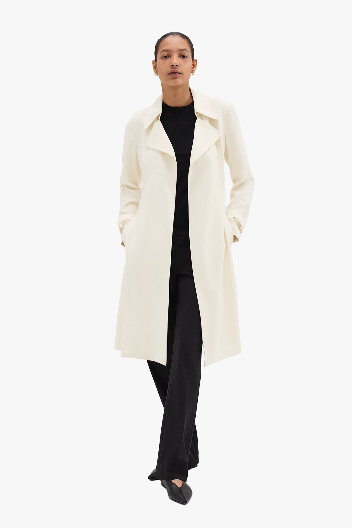 Minimalist trench coat is a timeless outerwear staple that instantly refines any look. Finished with a waist tie to temper its relaxed silhouette, this fully-lined style is cut from our signature Japanese Admiral Crepe for a softly draped fit that maintains a polished appearance.