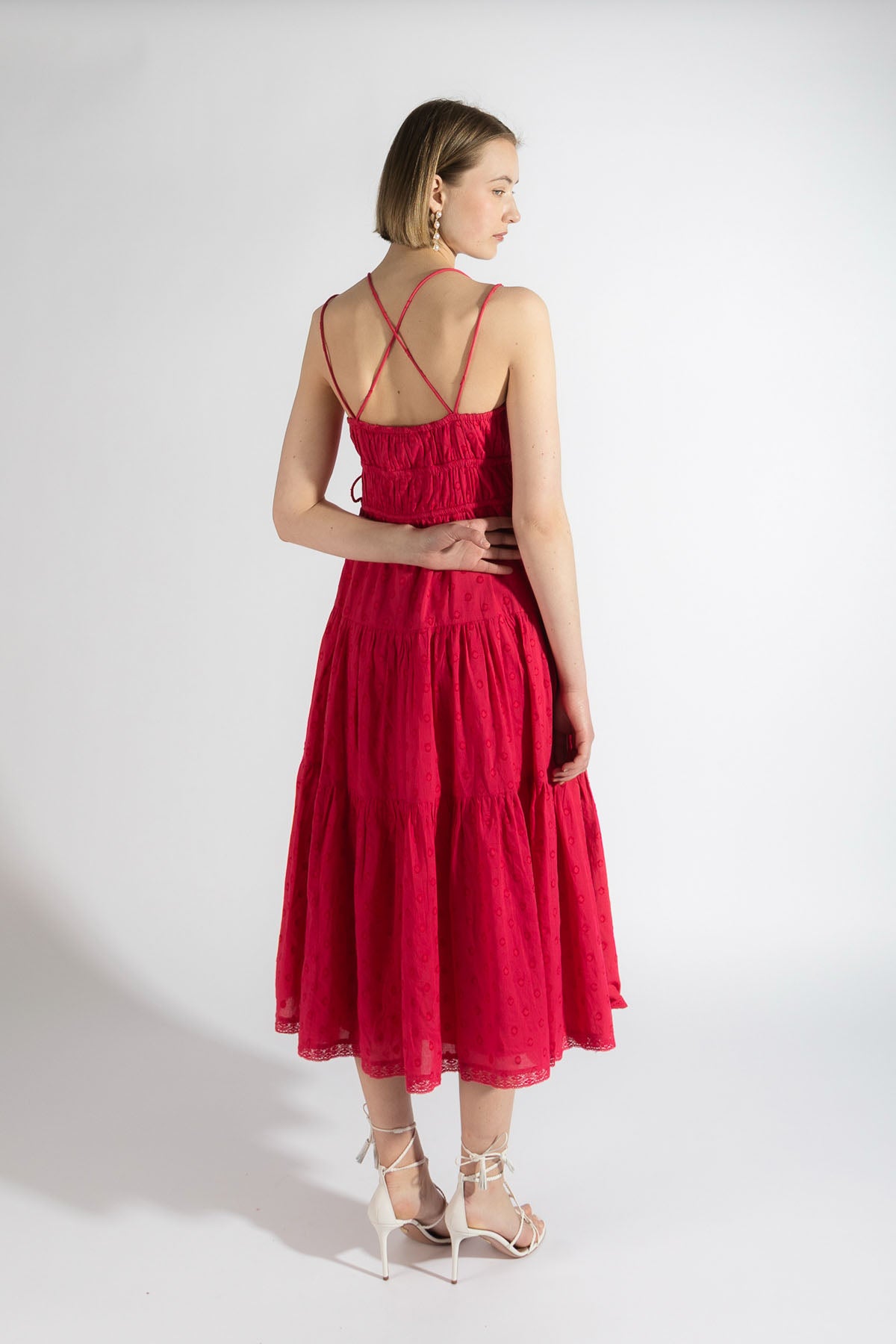 The Freya Dress from Ulla Johnson is crafted from 100% cotton, offering a lightweight and breathable feel. Designed in the captivating Cosmos pink hue, this dress embodies effortless elegance with its delicate details and refined craftsmanship.