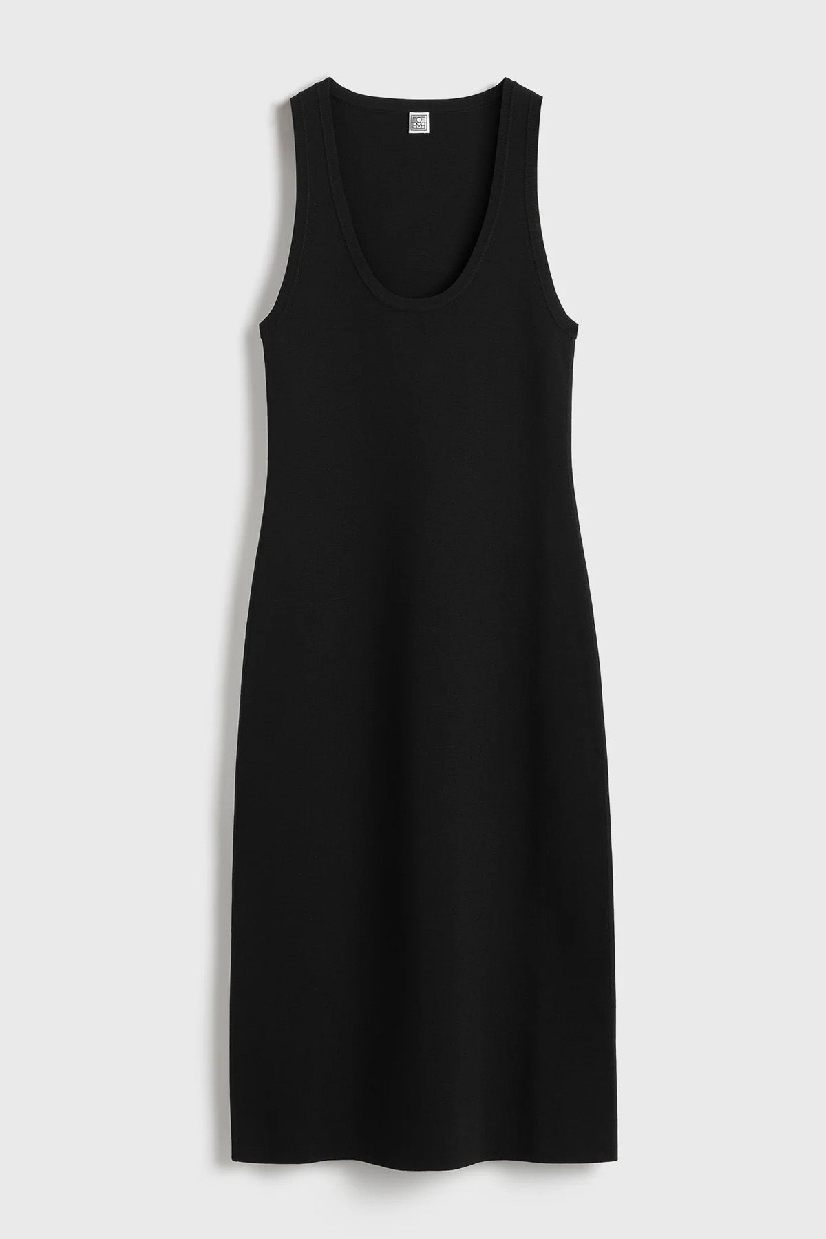 Scoop-neck TOTEME tank dress knitted from our signature compact jersey, which hugs the body for a sculptural silhouette. Dress it up with heeled mules.
