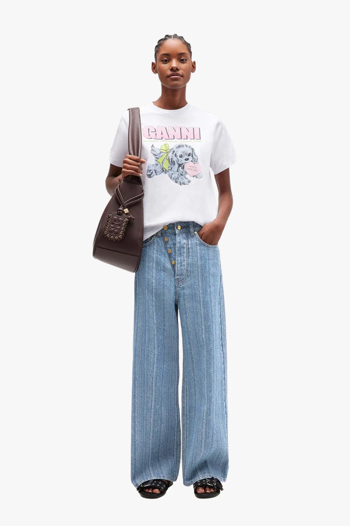 Buksen har en moderne, baggy passform og et GANNI-logoemblem på baklommen for en subtil signaturdetalj. Perfekt å style med alt fra t-skjorter til strikk for en uanstrengt, men gjennomført look.