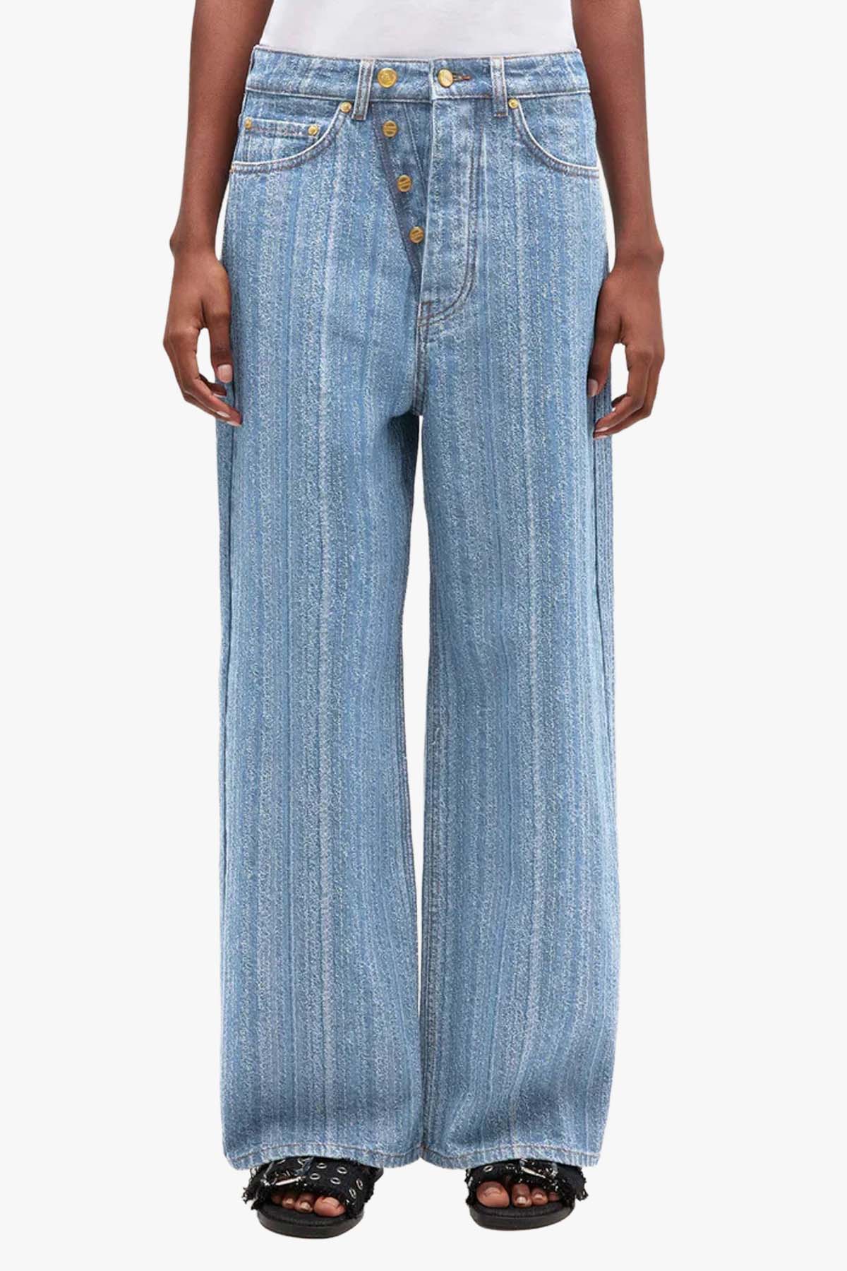 GANNI - Structured Denim Double Fly Baggy Jeans Mid Blue Stone