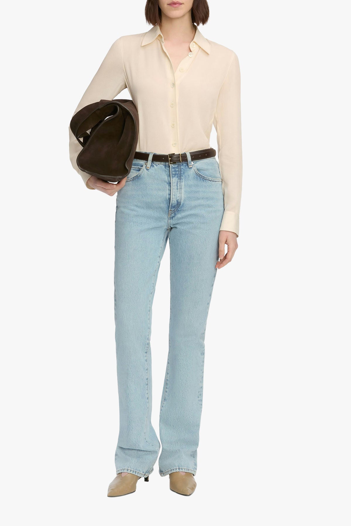 The Vertical Johanna er et sofistikert innslag i din denimrotasjon – en klassisk jeans med høy midje og rette ben som fremhever silhuetten med tidløs presisjon. Den stive denimkvaliteten og den klassiske knappelukkingen gir et autentisk uttrykk med moderne eleganse, slik FRAME alltid balanserer det beste fra vintage og luksus.