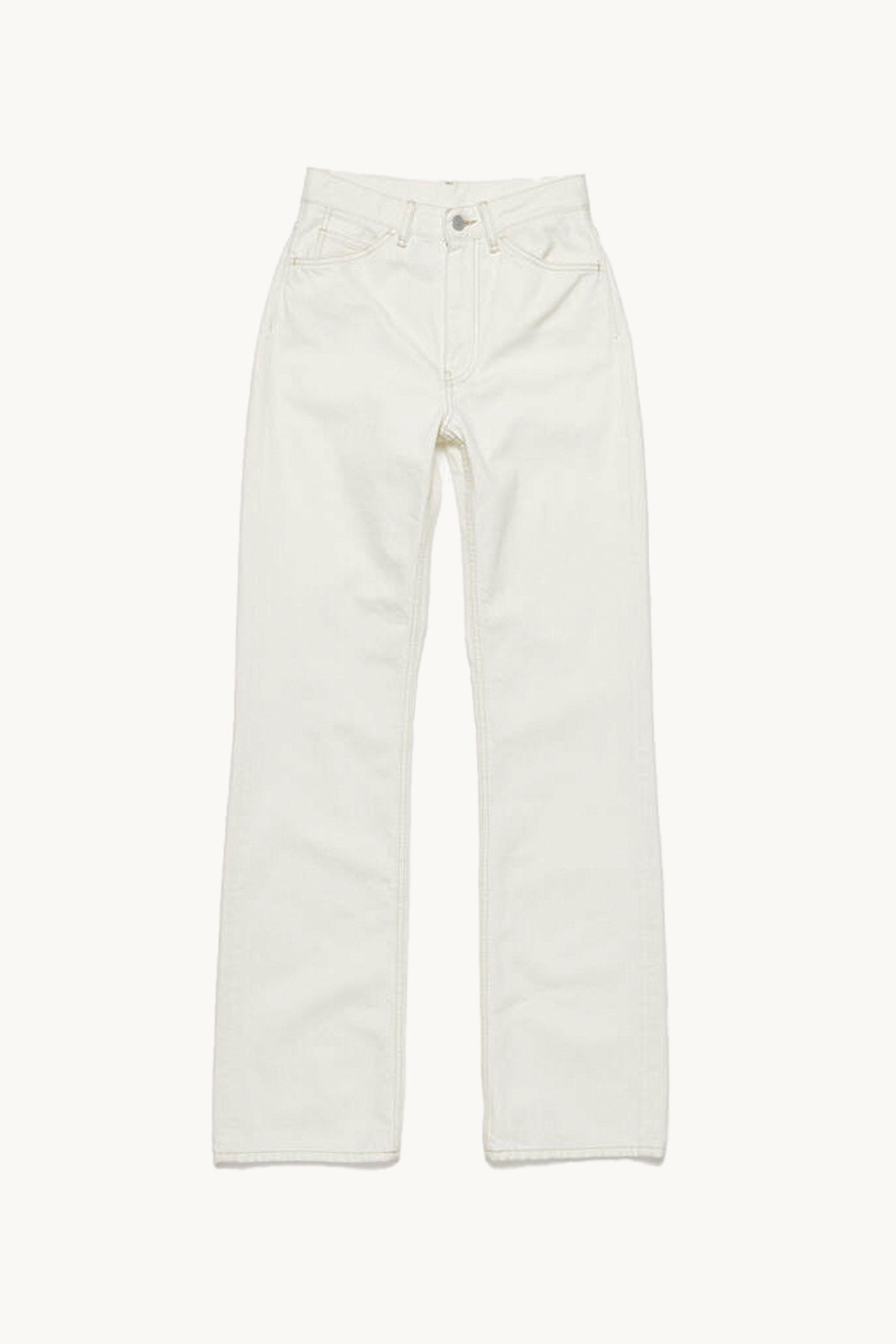 1977 jeans are cut to a regular fit with a high waist, bootcut leg and long length. Crafted from non stretch denim with an off white wash.