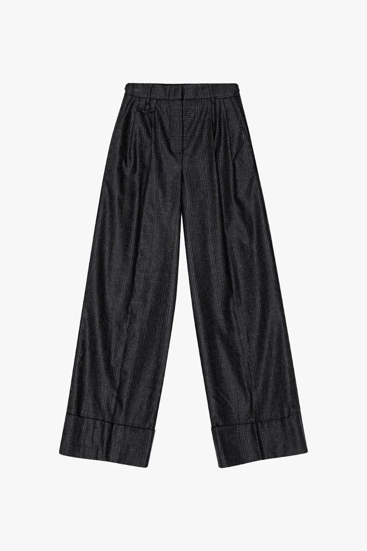 Discover sophistication in every detail with our mid-waisted trousers. Boasting wide legs with fold-up hems, adjustable waist, and convenient pockets, they redefine comfort and style effortlessly.