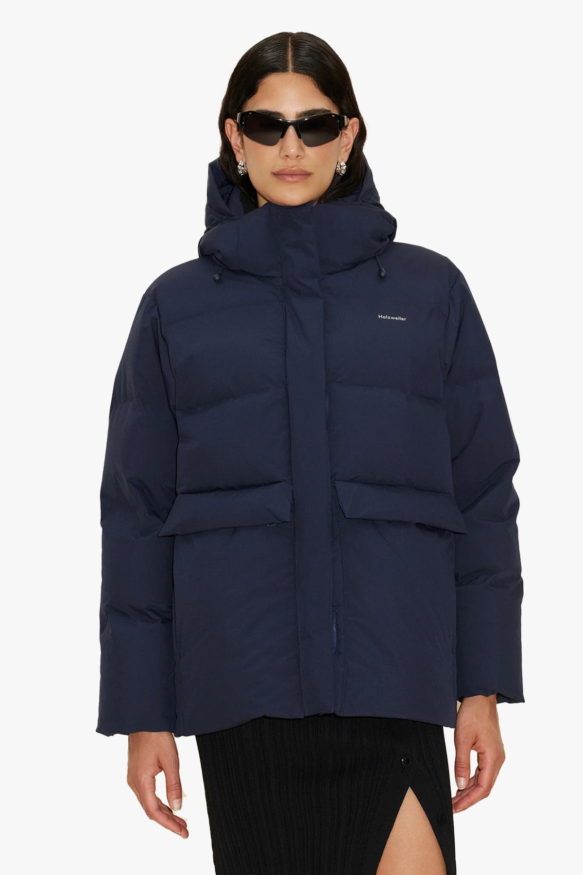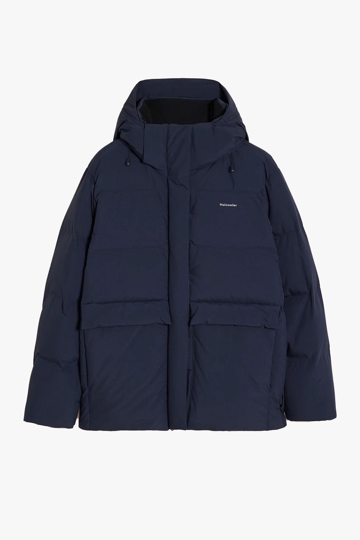 Holzweiler’s Besseggen Down Jacket is made from recycled and responsibly sourced materials. Padded with RDS-certified down, this mid-length jacket has been designed with 10K/10K Waterproof DWR finishing. Soft and breathable, it has a temperature rating effective down to −15°C and features both stick-in pockets and two large patch pockets at the front for storing valuables.
