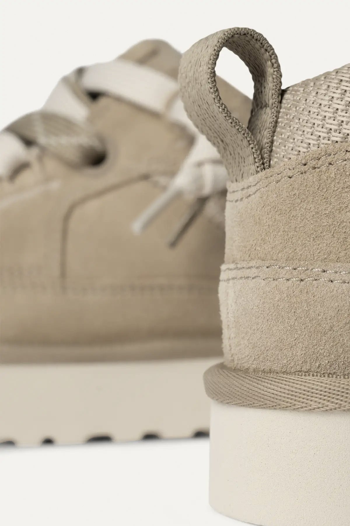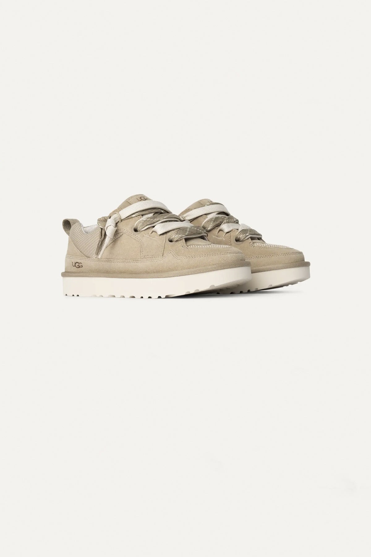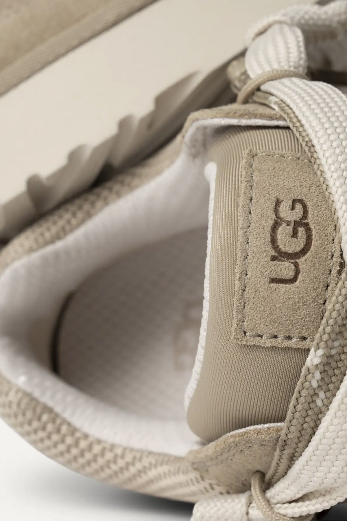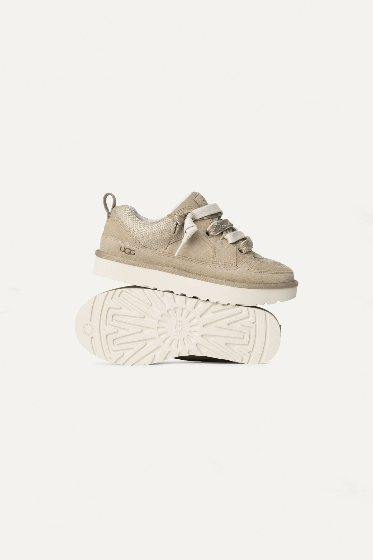 With the ease of a sneaker and the comfort of a slipper, our Lo Lowmel is all about impeccable vibes. This newcomer to the Lowmel family features a lower profile that begs for baggy jeans, '90s jams, and seaside hangs. The upper features a textured mix of genuine suede and recycled ballistic canvas mesh, giving the quintessential sneaker style. On the bottom, you'll find our springy sugarcane EVA outsole that offers signature UGG® comfort and makes these feel extra light on the foot.
