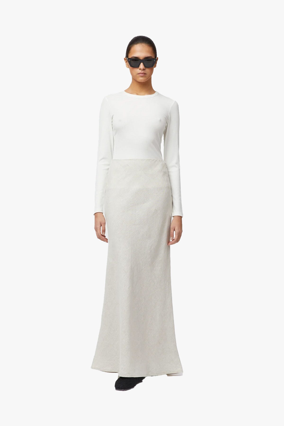 Cut from lightweight linen, the Esplanade Linen Skirt features a tailored bias cut and maxi length for natural flow. An invisible side zipper ensures a seamless fit. Wear it with the Linen Monaco Jacket for an elegant look.