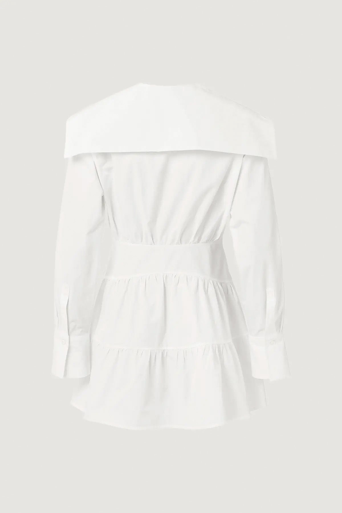 The Poplin Shirt Dress from Avora is a timeless piece crafted from crisp 100% cotton. Designed with a relaxed fit through the upper body and gentle shaping at the waist and hips, it combines tailored elegance with everyday ease. The wide collar, oversized cuffs, and gathered back panels add elevated structure and fluid movement to this modern classic.