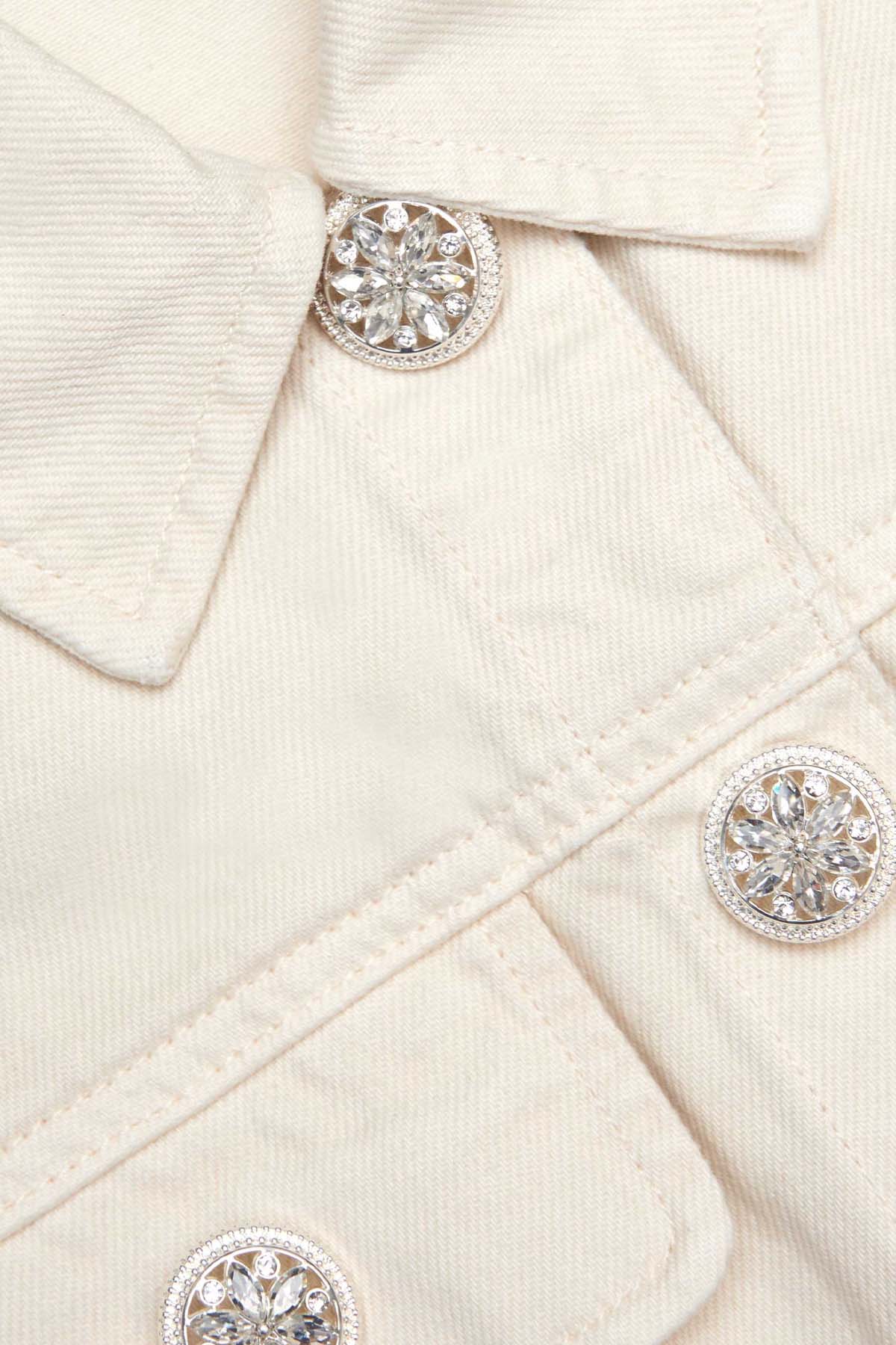 Glittering diamanté buttons add irresistible shine to the polished silhouette of this cream denim dress. Show off its flared hem with brogues for day and switch to heels for karaoke with the girls.