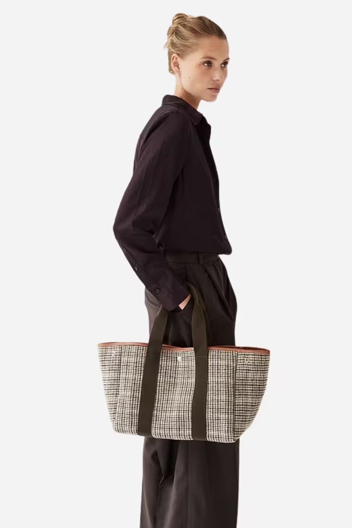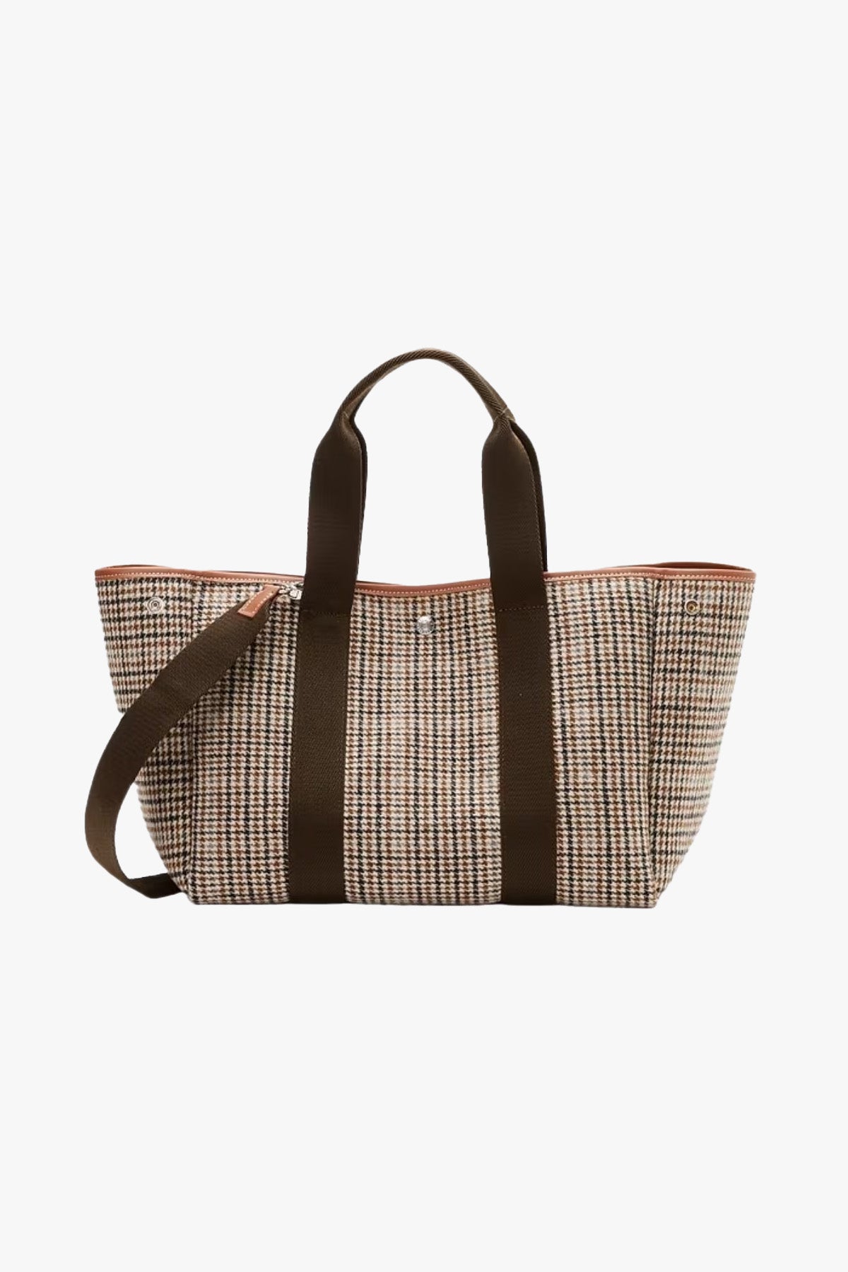 Our medium Traversée PDP bag got its name from the Pied-de-poule, or Houndstooth, pattern it is crafted from. The subtle brown colour shades make it a chic addition to your looks while the size is ideal for everyday use, as well as work. It comfortably fits a laptop while leaving space for other necessities.